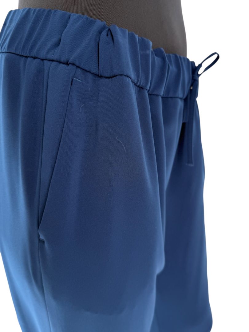 Elevate your tailoring with this chic Akris Punto two-piece pantsuit in deep navy. The single-breasted blazer features a notched lapel and a stunning tonal beaded appliqué at the shoulder for a touch of refined sparkle. Paired with relaxed-fit drawstring trousers, this set combines polished elegance with understated comfort—perfect for both professional and evening settings.