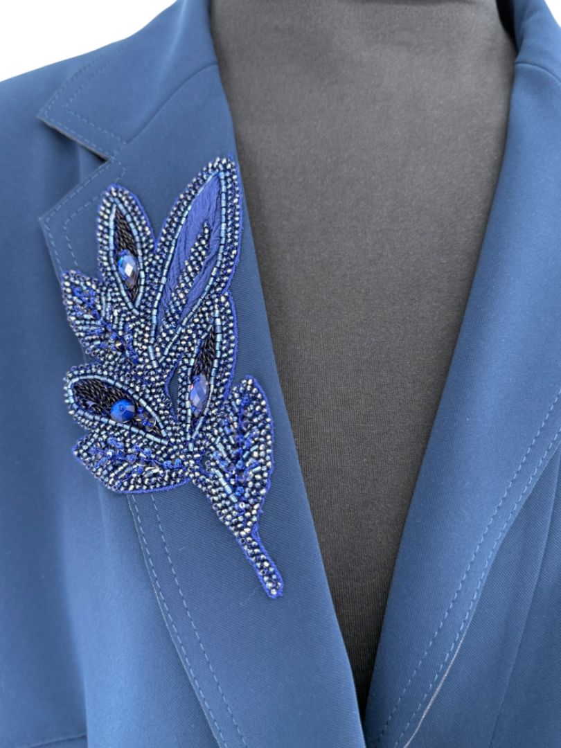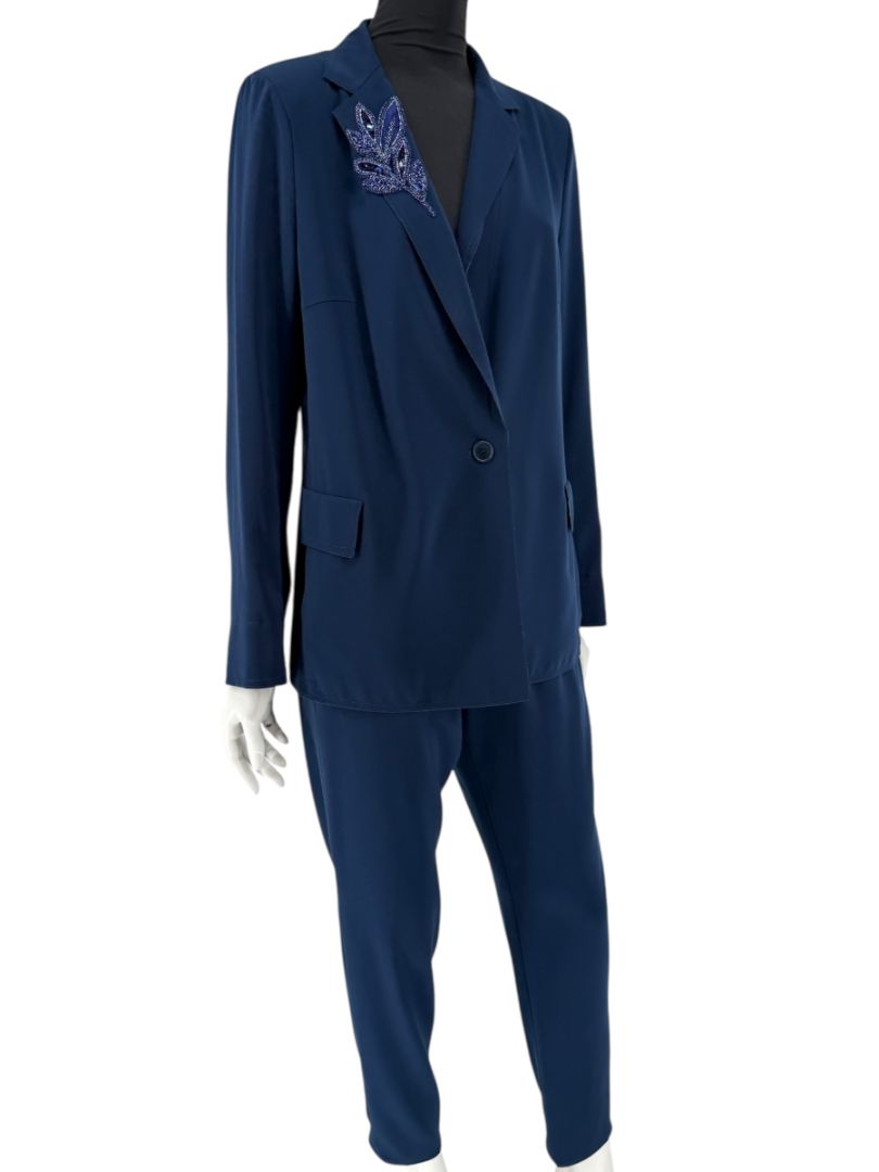 Akris Punto Navy Beaded Blazer & Pants Suit Set – Size US 10