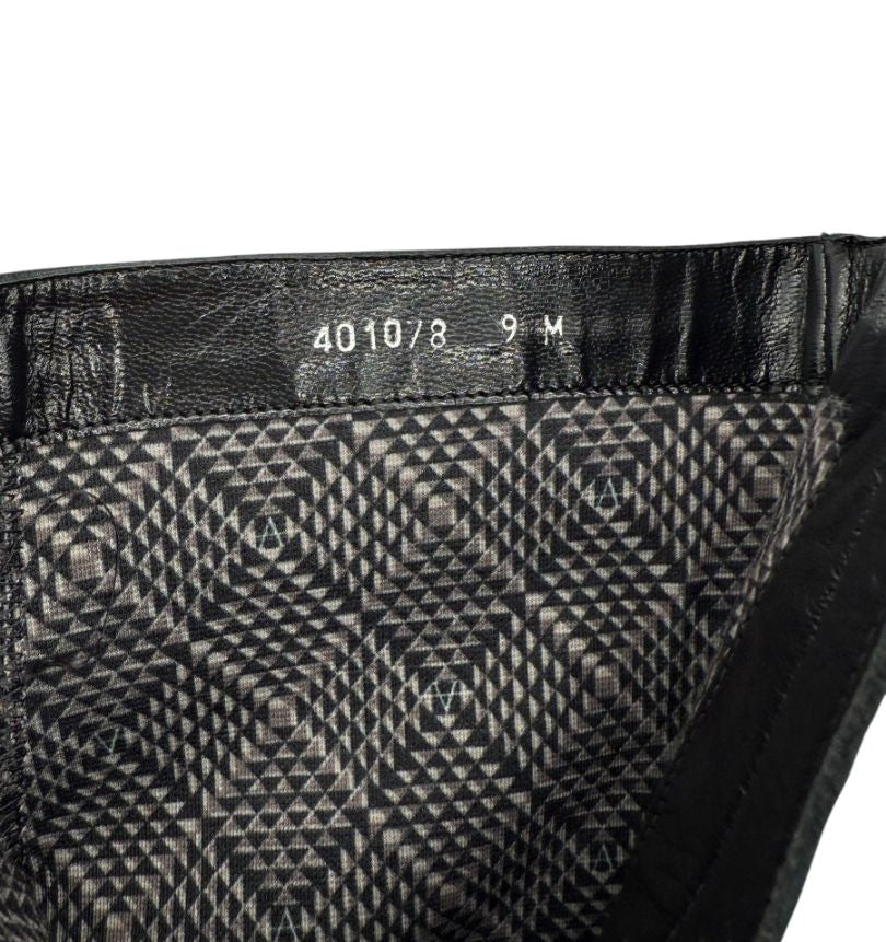 Sleek and sculptural, these Aquatalia booties are crafted from rich black suede with leather and a pointed toe and angular block heel that adds both height and architectural edge. The side zip closure allows for easy on/off, while tonal suede tie detailing at the back adds a signature touch. The soles are pristine, showing little to no wear.