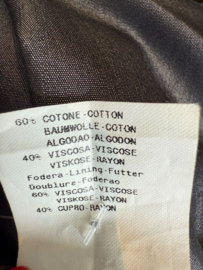 All fabric and brand labels shown confirm authenticity and detailed Italian construction.