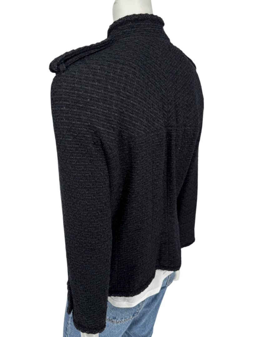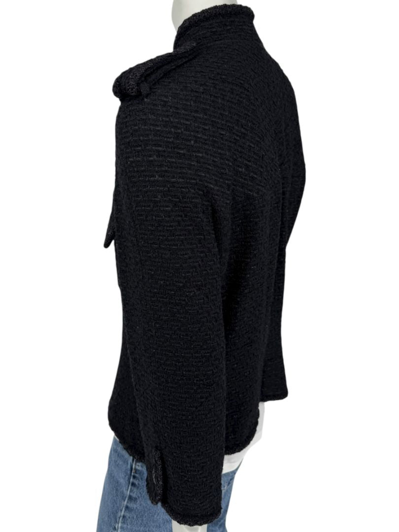 Chanel Women’s Black Textured Tweed Military-Inspired Jacket – Size 44 – Excellent Pre-Owned Condition