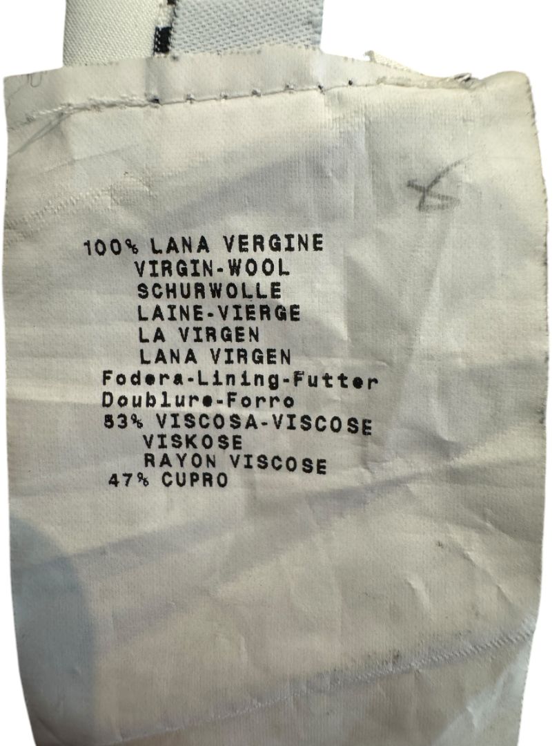 Excellent pre-owned condition. The wool fabric remains smooth and well kept with no holes, stains, or major signs of use. Only light, typical lint from handling. Zipper functions smoothly, and seams are intact. A beautifully maintained designer garment.