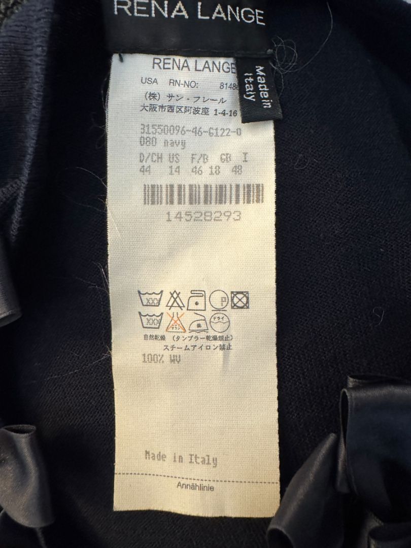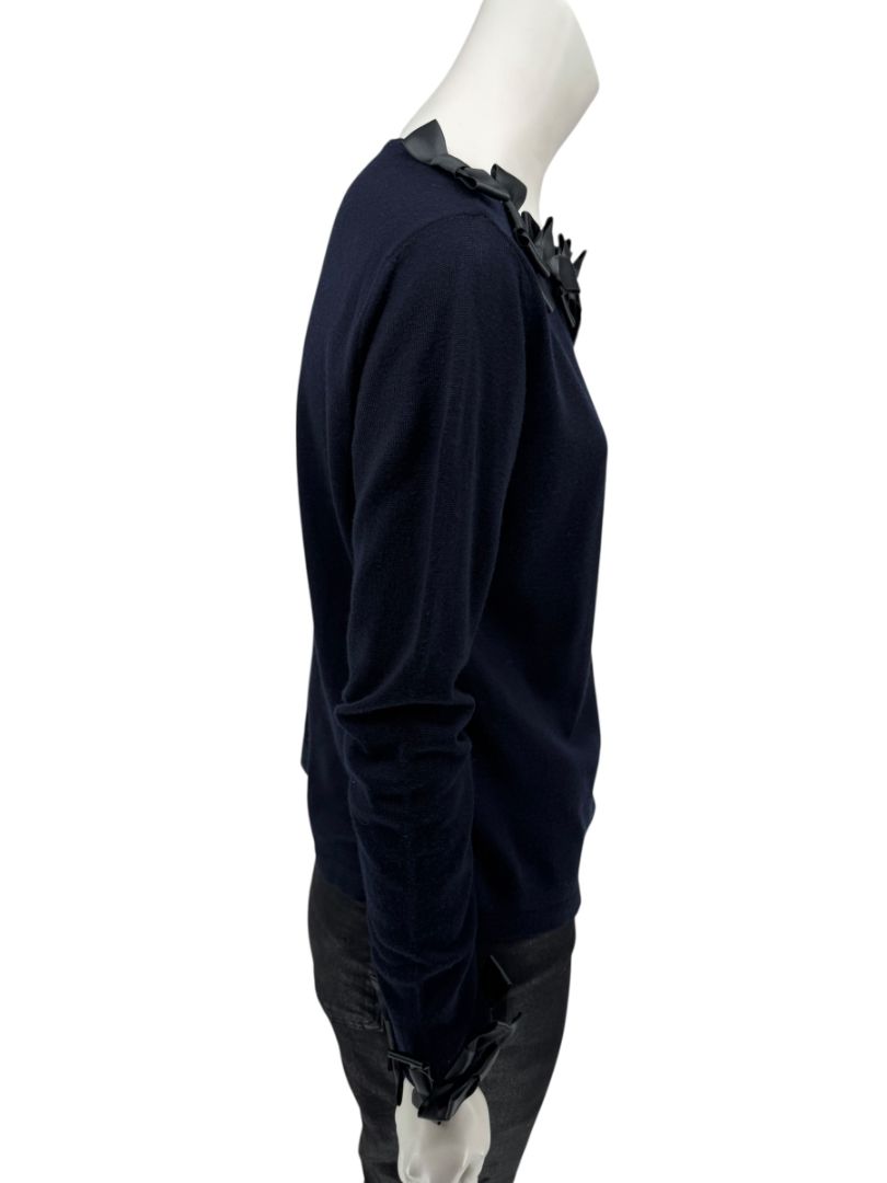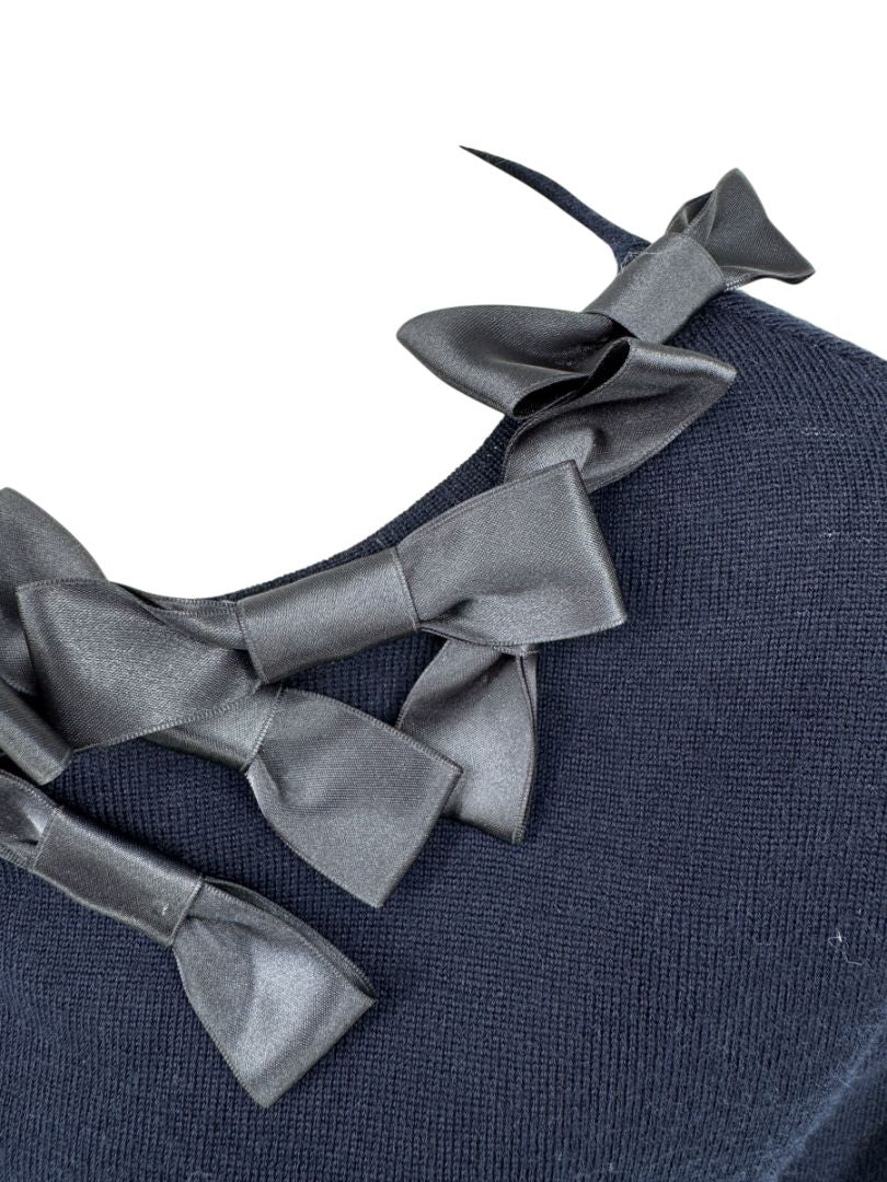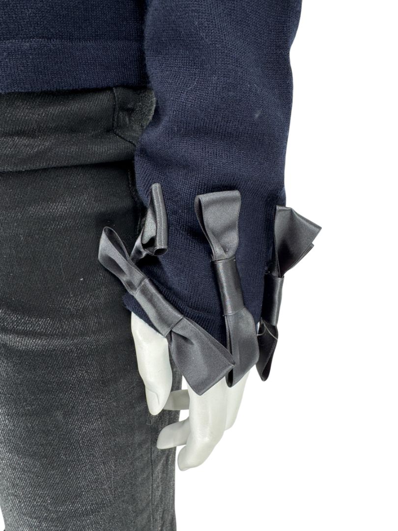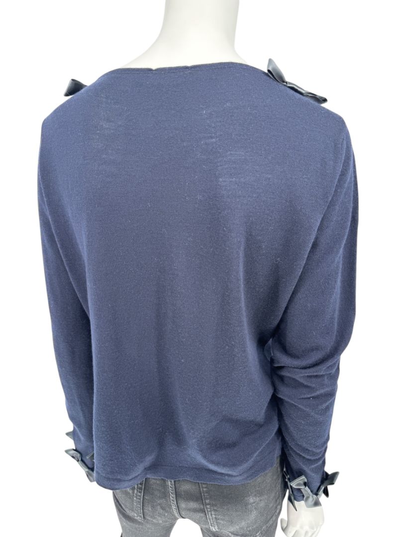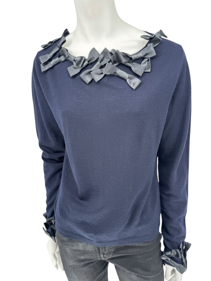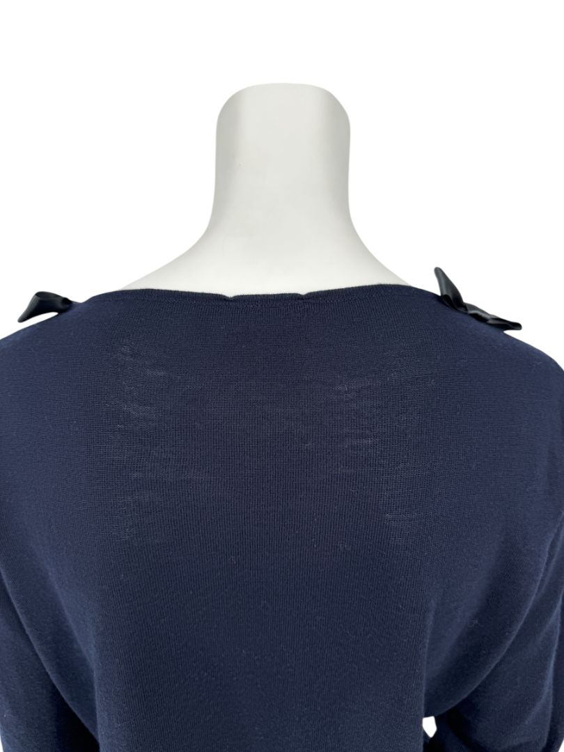 Rena Lange Navy Wool Sweater with Satin Bow Detail – Size 14 US / 46 FR / 48 IT / 44 DE