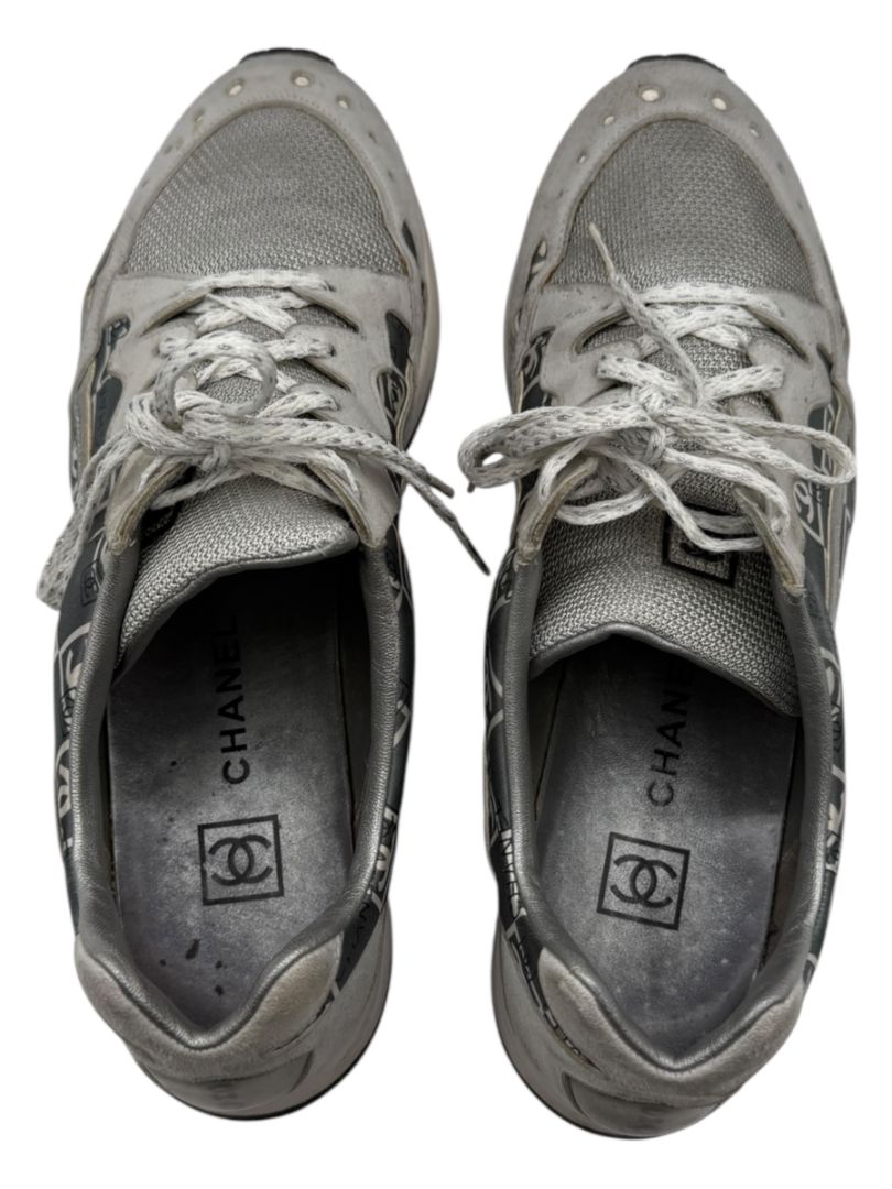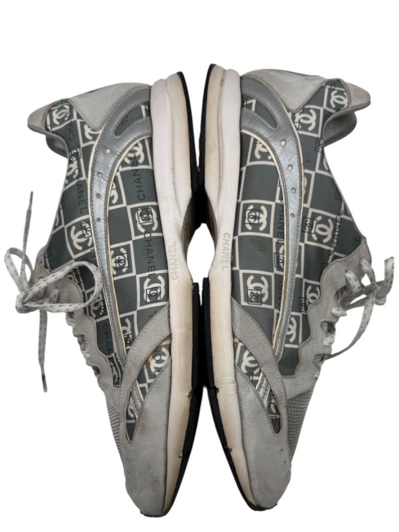 Chanel Grey & White Nylon Suede Low-Top Sneakers – Size 40