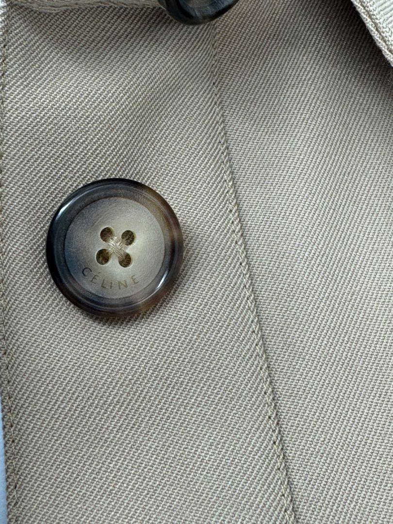 Effortlessly sophisticated with utilitarian edge, this sleeveless Céline midi dress is tailored from structured 100% wool in a versatile khaki tone. Featuring a sharp point collar, four oversized patch pockets, and a deep side slit for movement, it strikes a balance between function and elegance. The wide ribbed self-tie belt cinches the waist at the back, subtly enhancing the silhouette. A minimalist yet bold piece, this dress embodies the streamlined luxury of Phoebe Philo–era Céline.