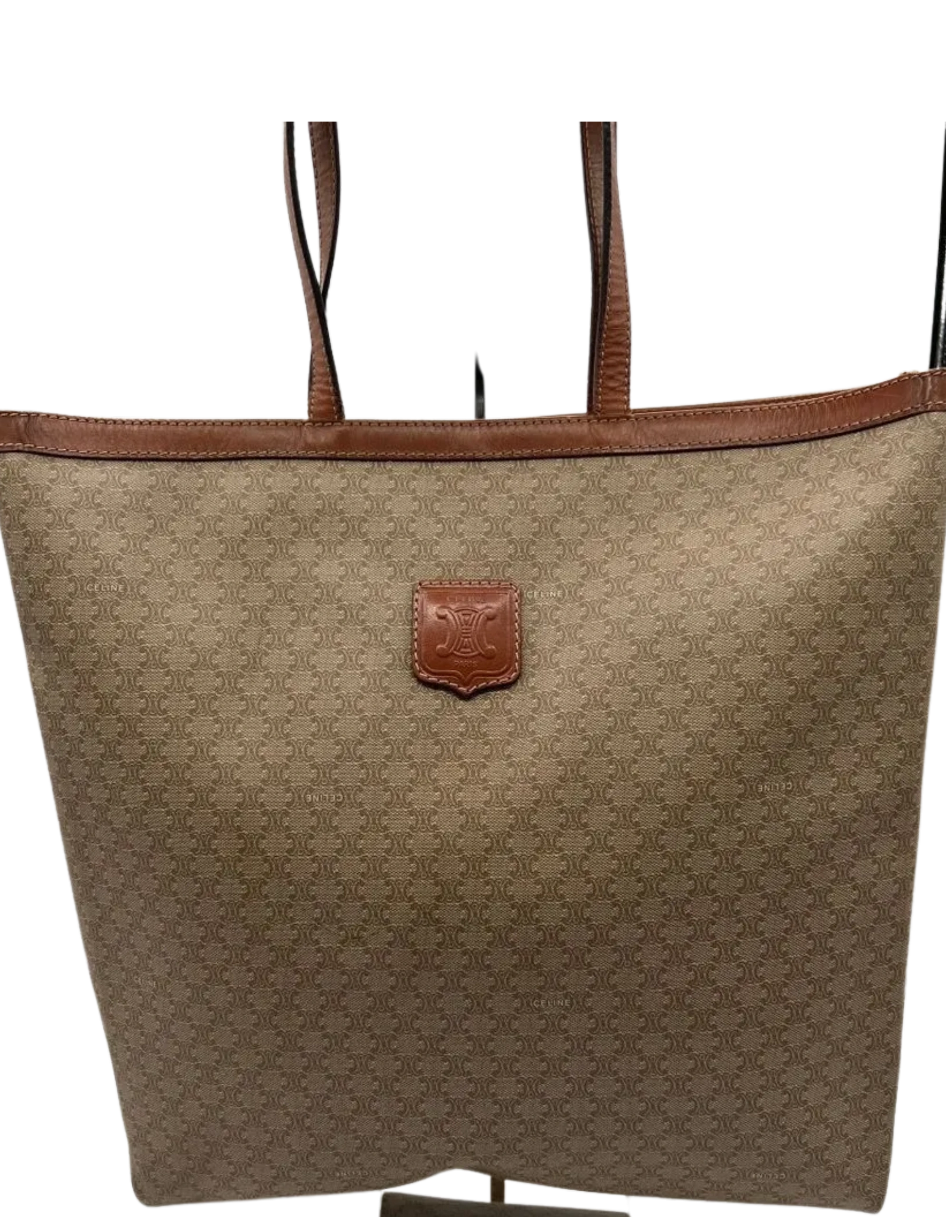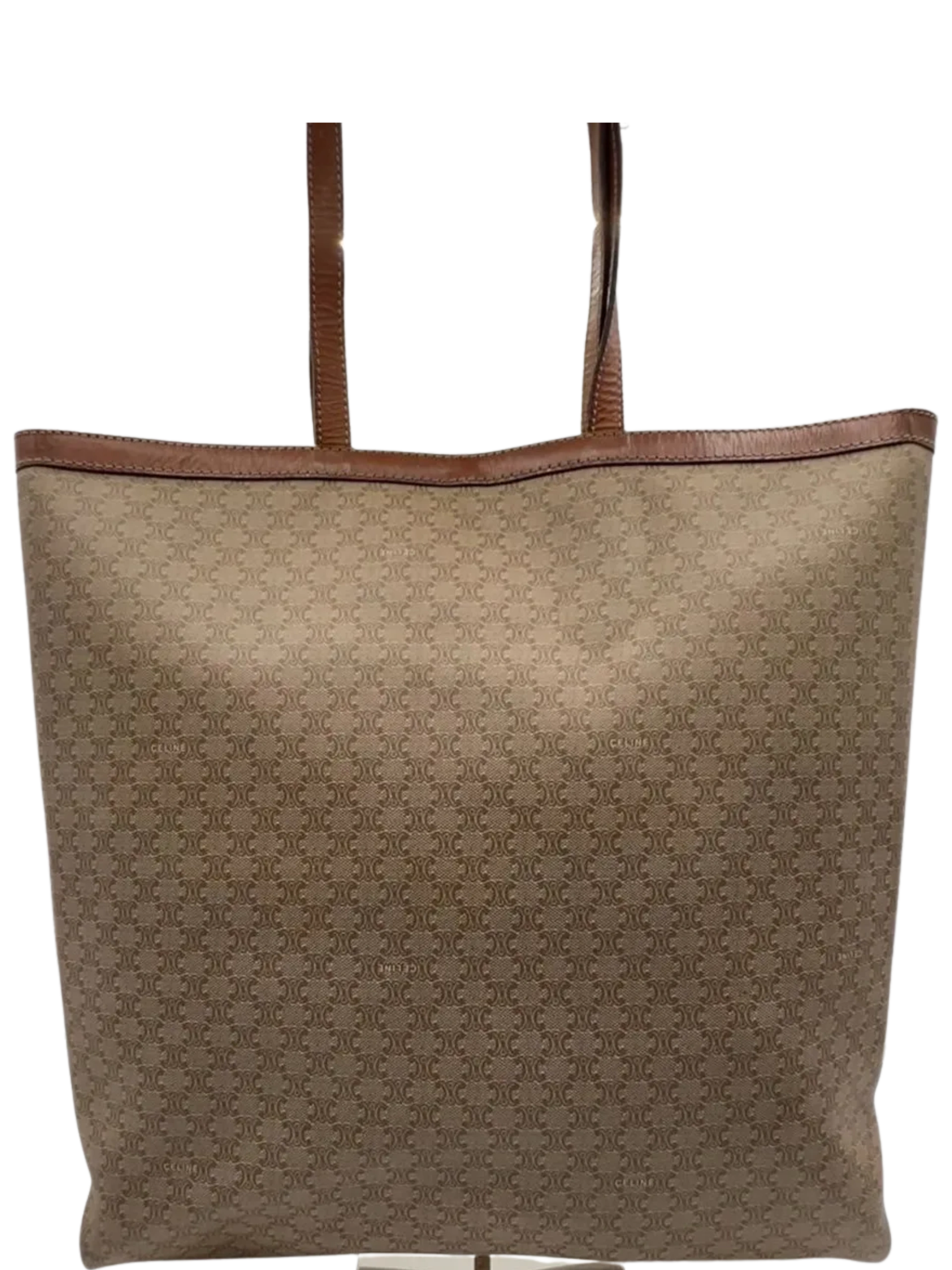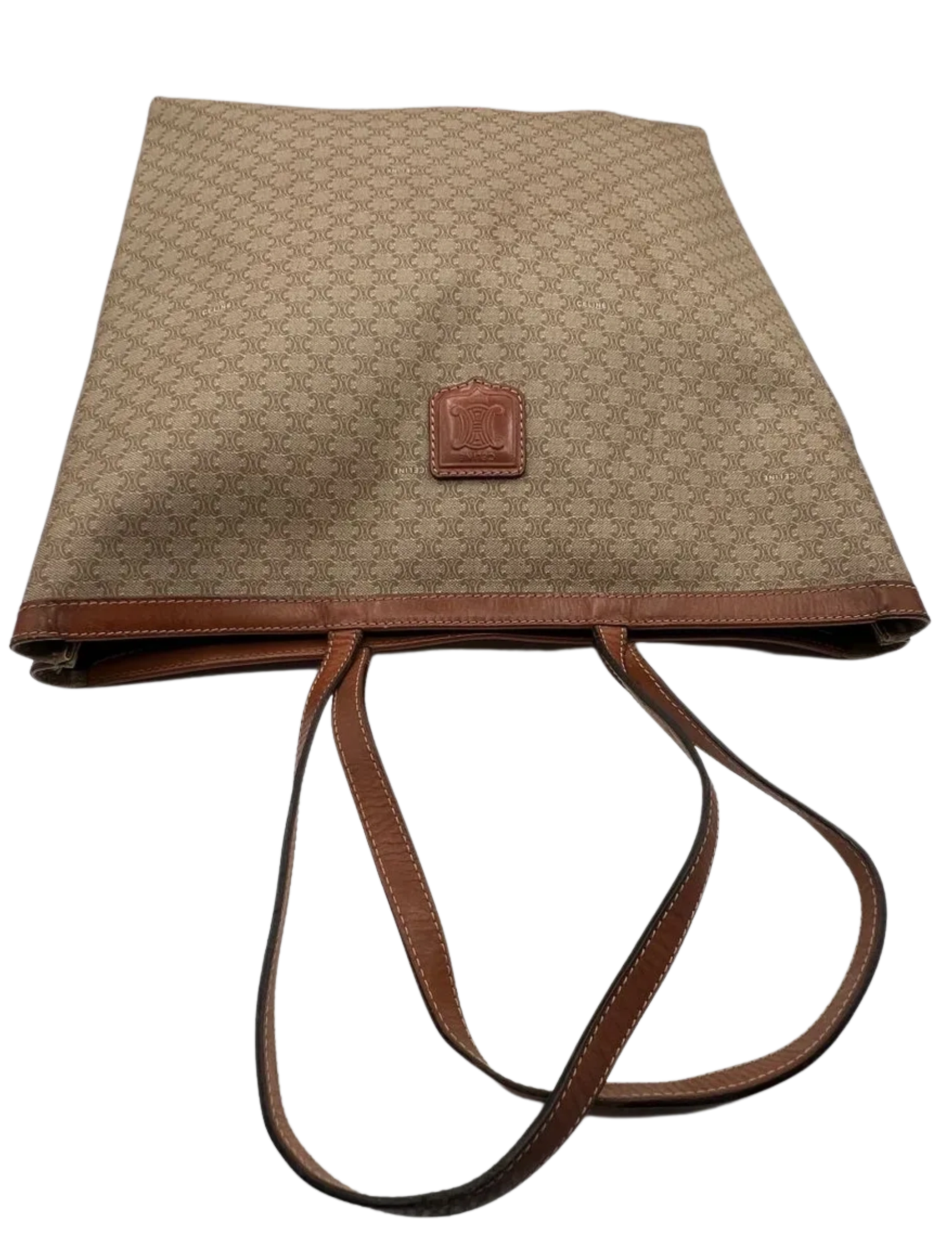 Celine Macadam Coated Canvas Tote Bag - Coated Canvas Leather, Serial Number/Date Code M06, Made in Italy. Light creasing, light scuffs and scratches to leather trim and handles but overall in great condition with lots of life left in it! Dimensions: 13.5" W x 15" H x 1.5" D 9" Handle drop