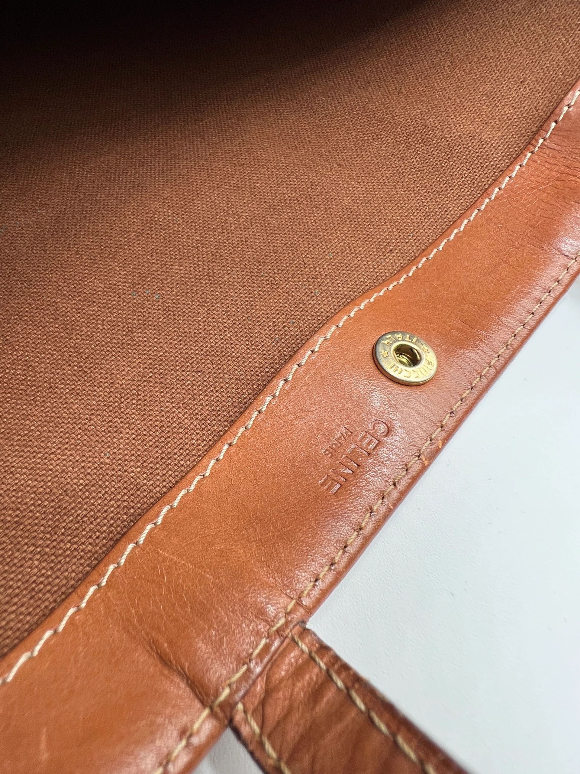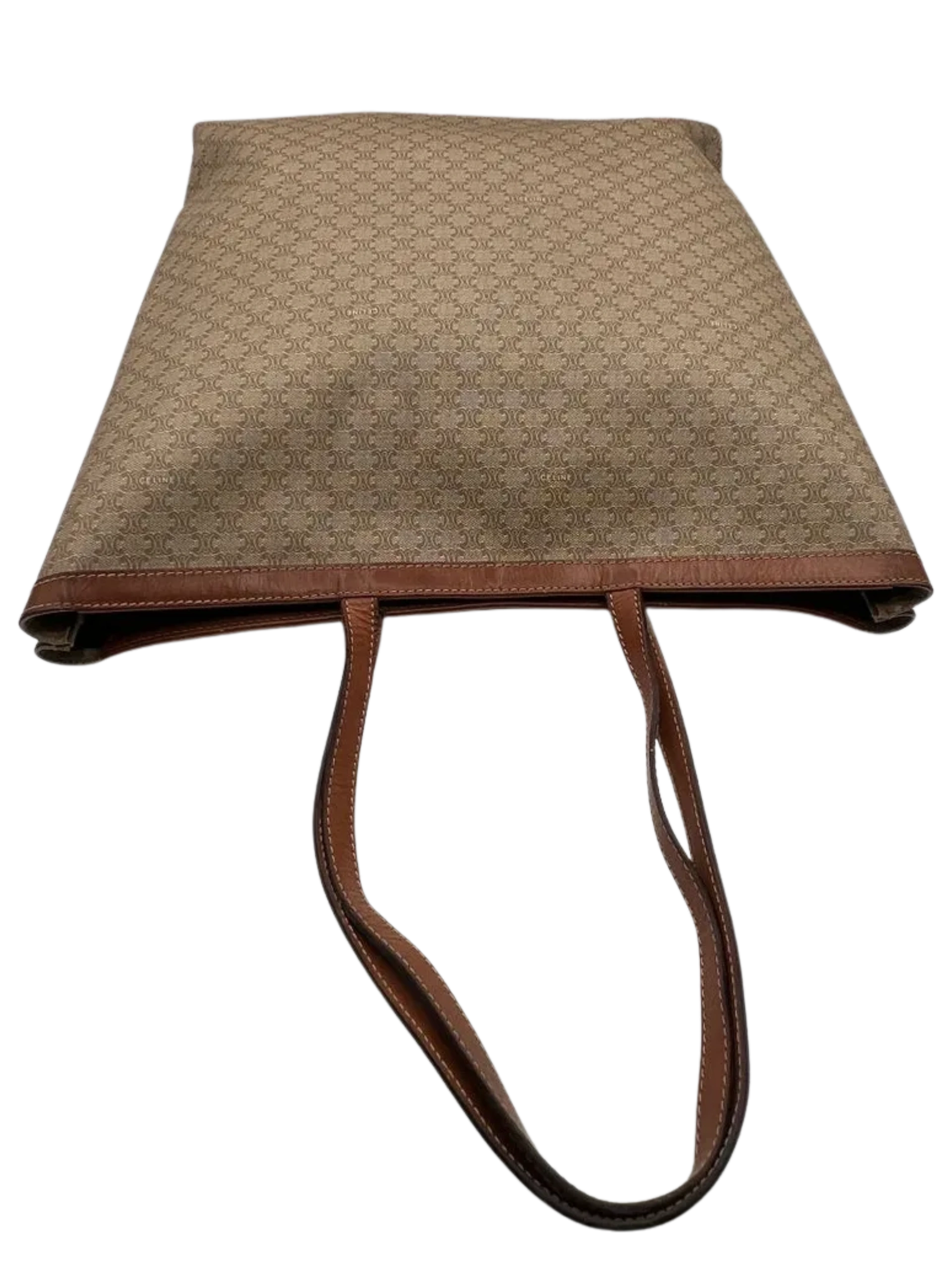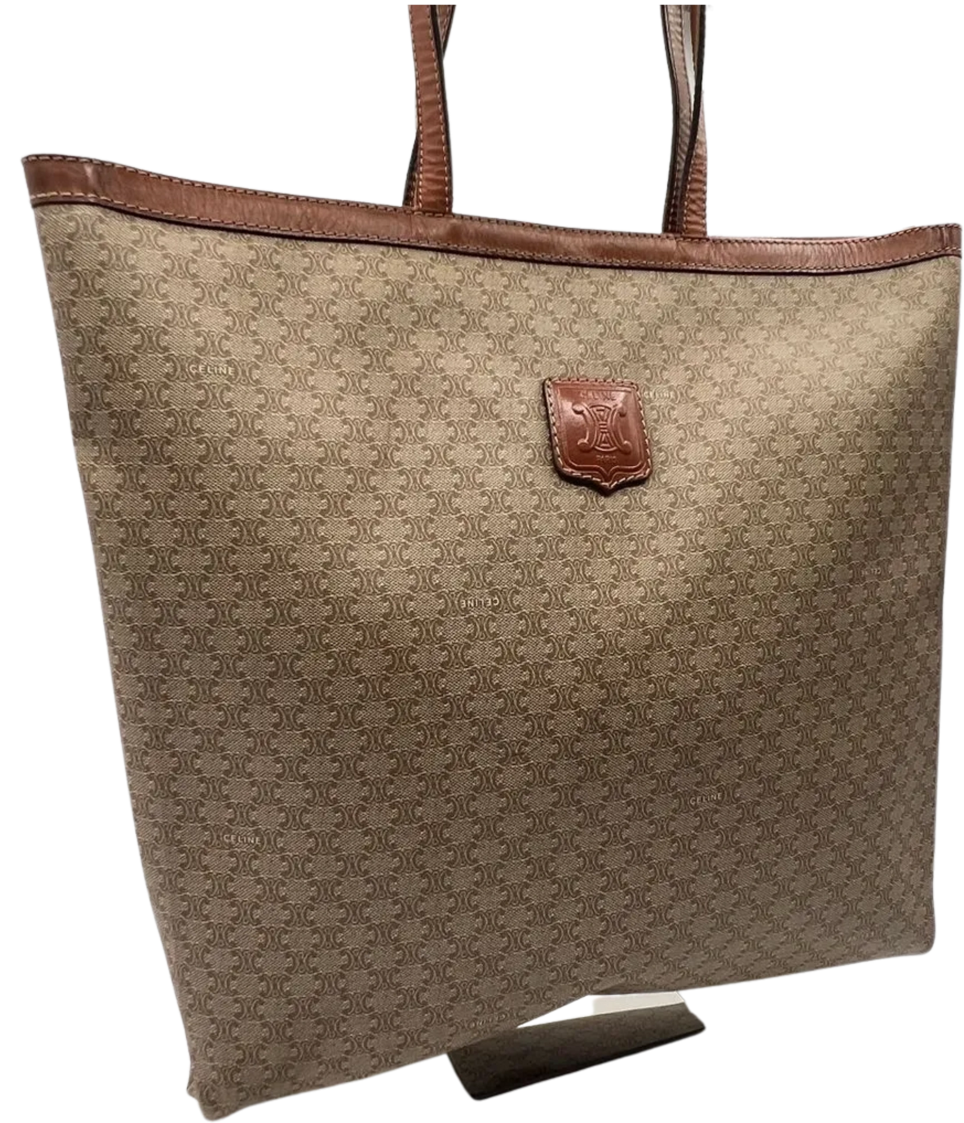 Celine Macadam Coated Canvas Tote Bag - Coated Canvas Leather, Serial Number/Date Code M06, Made in Italy. Light creasing, light scuffs and scratches to leather trim and handles but overall in great condition with lots of life left in it! Dimensions: 13.5" W x 15" H x 1.5" D 9" Handle drop