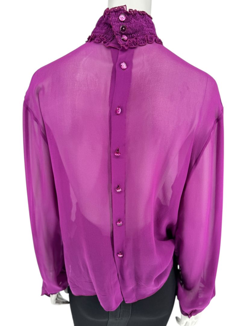 Chanel Fuchsia Silk High-Neck Blouse – Fall 2001 FR 42 – Excellent Pre-Owned Condition