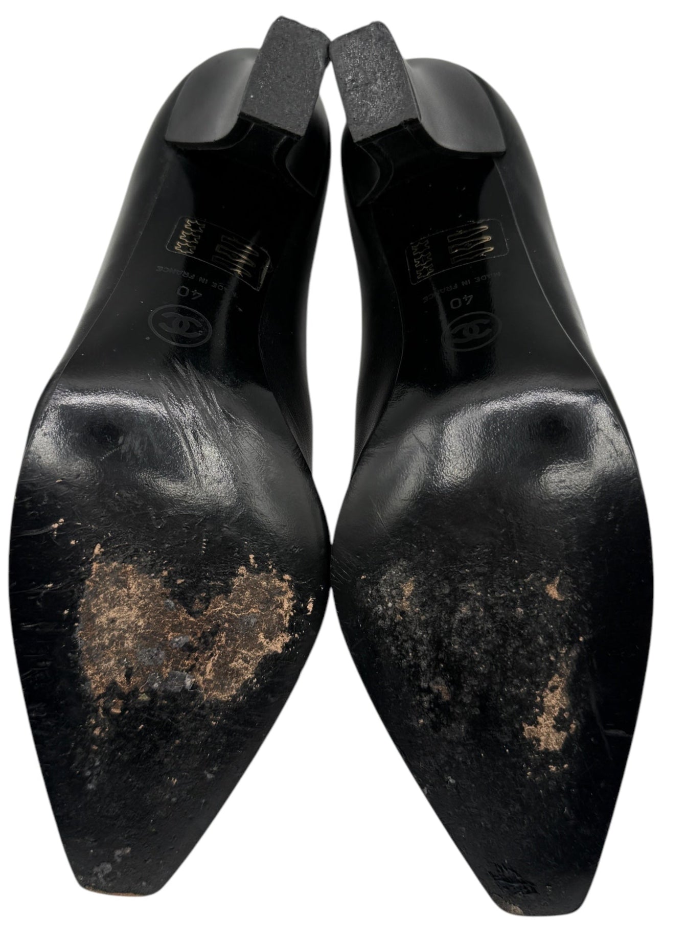 CHANEL CC Logo Black Leather Pumps - Size 40