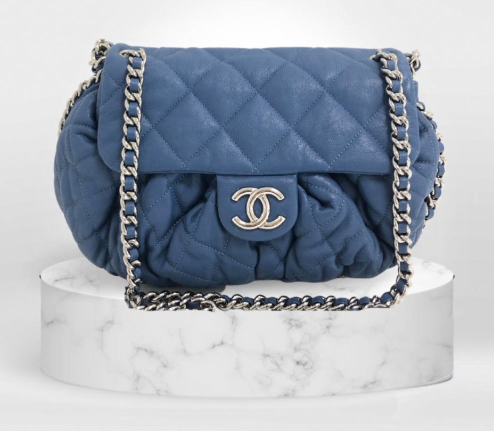 On many Chanel mavens' "holy grail" lists is this thick and soft Chanel small sized flap from the Chain Around line.