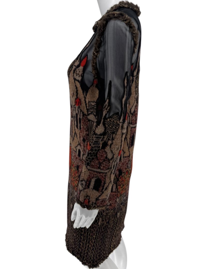 With its long sleeves, crew neckline, mini length, and incredibly intricate knitwork, this dress is a striking choice for fall and winter, and an essential piece for any serious Chanel collector or admirer of Lagerfeld’s storytelling collections.