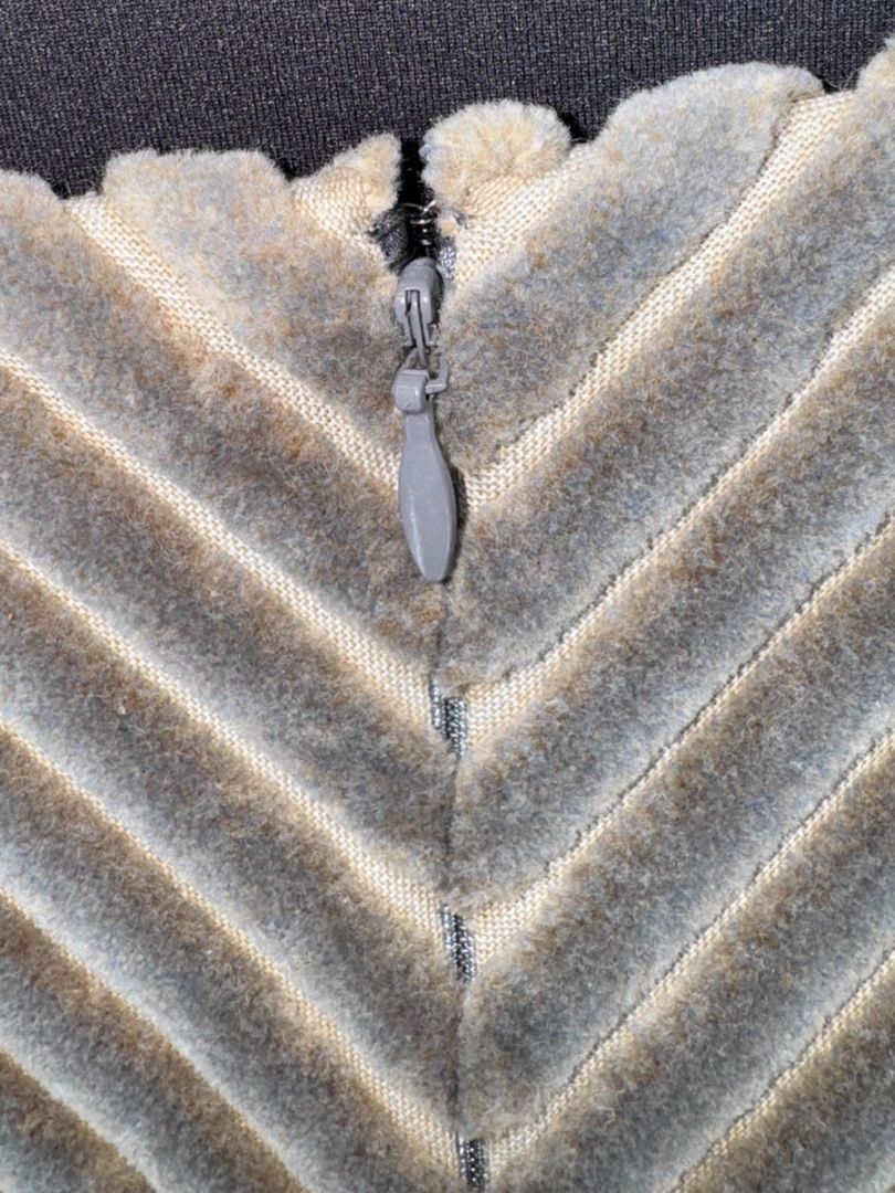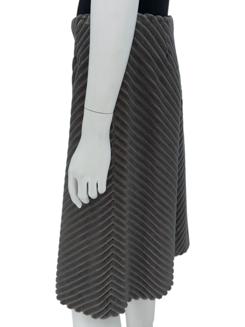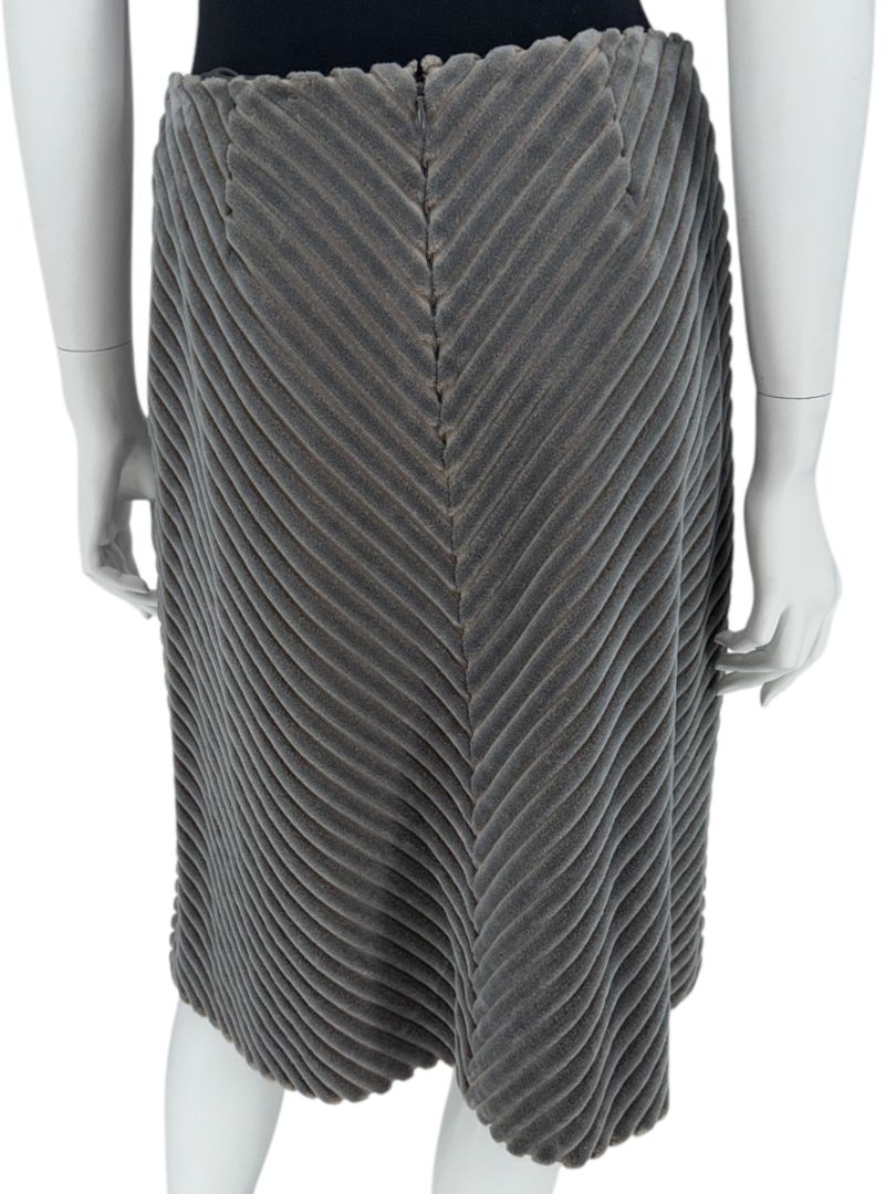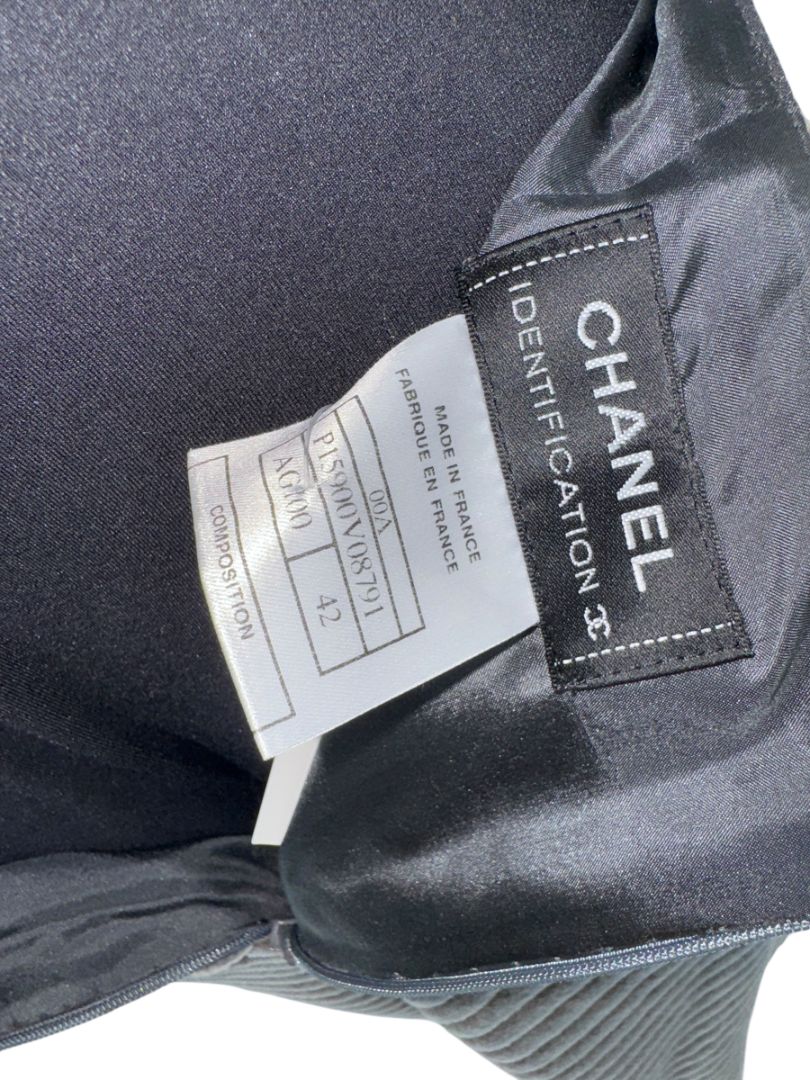 This Gray Chanel Identification Line skirt is in Great condition. Light wear, Concealed zipper at back, CC logo on hip.
