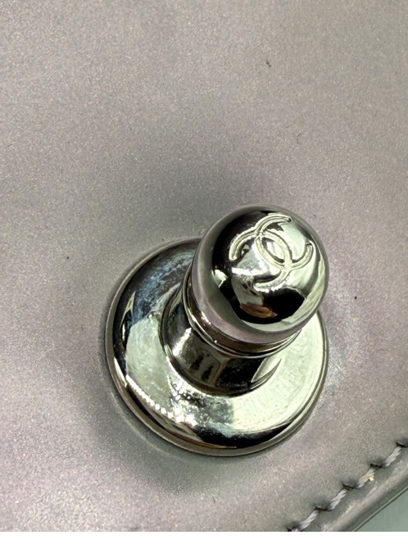 Color/Finish: Lilac iridescent patent calfskin with silvertone hardware