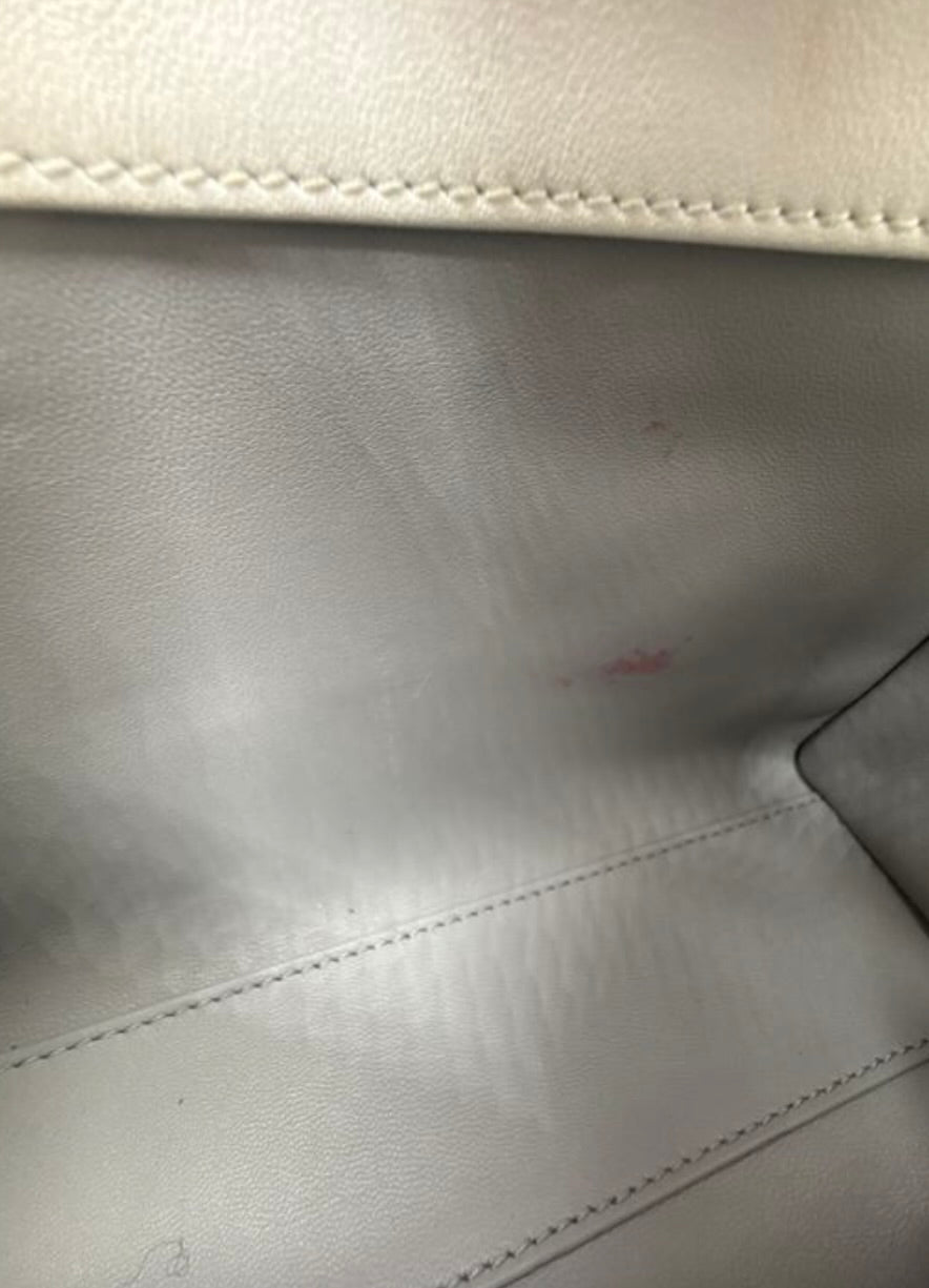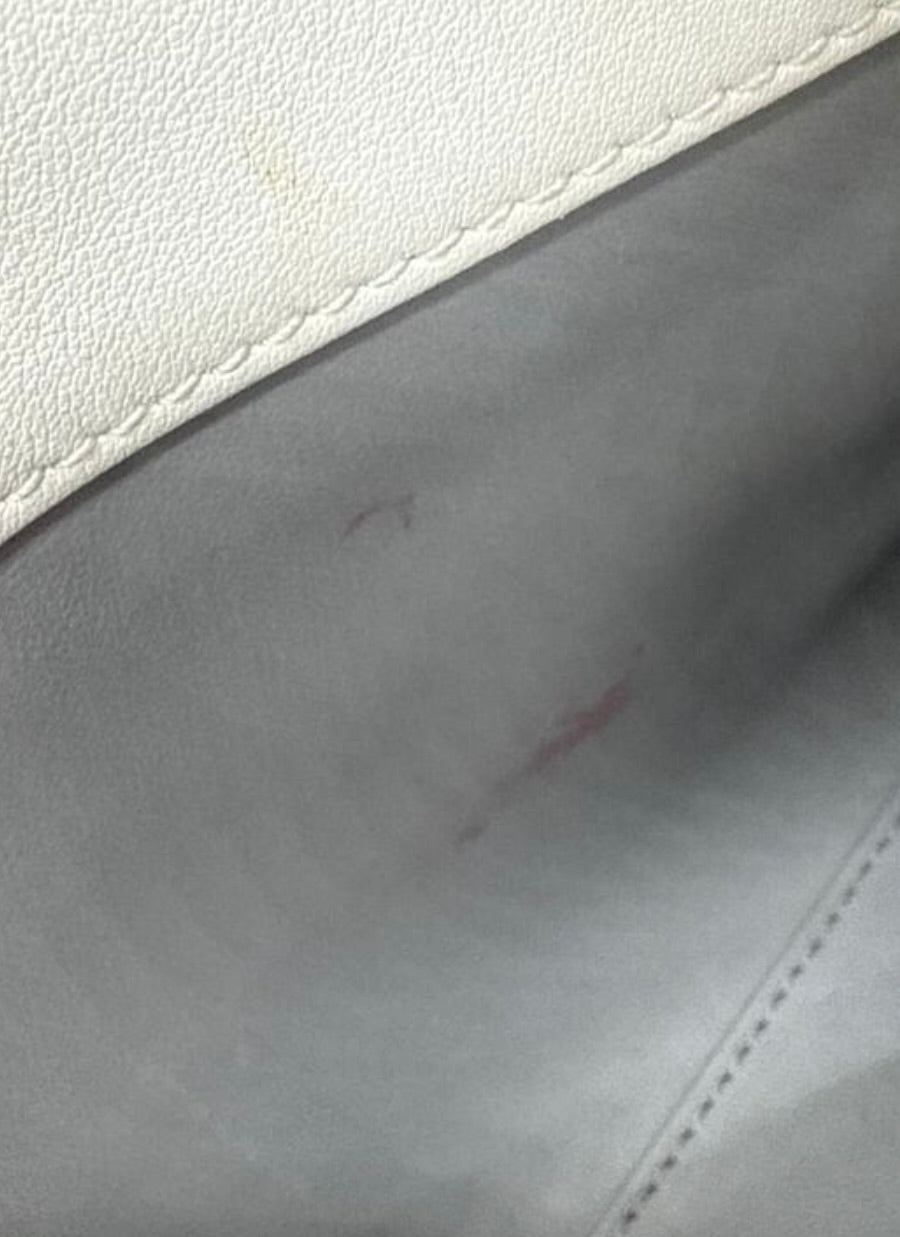 Christian Dior Leather & Metal Embellished Mini Lady Dior Bag - Authentic This stunning Dior bag is in absolutely amazing pre-owned condition. It was carried a few times, and it spent the rest of the time sitting in the closet. There are no scratches, no bottom corner wear, or scuffing to the leather. This is a fabulous bag! It is the Mini size in white leather. Comes with dust bag, authenticity card and booklet ( no box), Interior is suede, one zipper pocket inside. Comes with adjustable shoulder strap which is also stamped "CD" on hardware. Condition: There are 3 faint marks, One pinhole sized dot on the flap (see birds eye view image),
