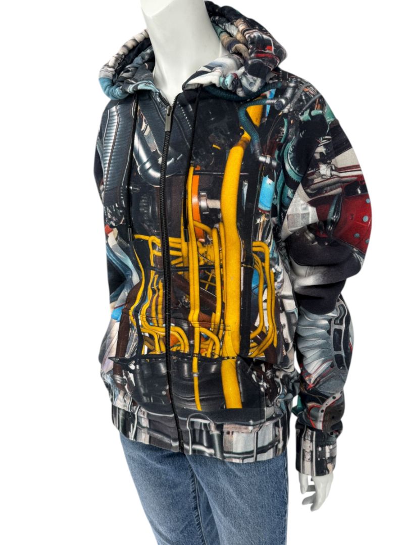 Christopher Kane Men’s Engine Print Cotton Zip Hoodie – Size L – Excellent Pre-Owned Condition