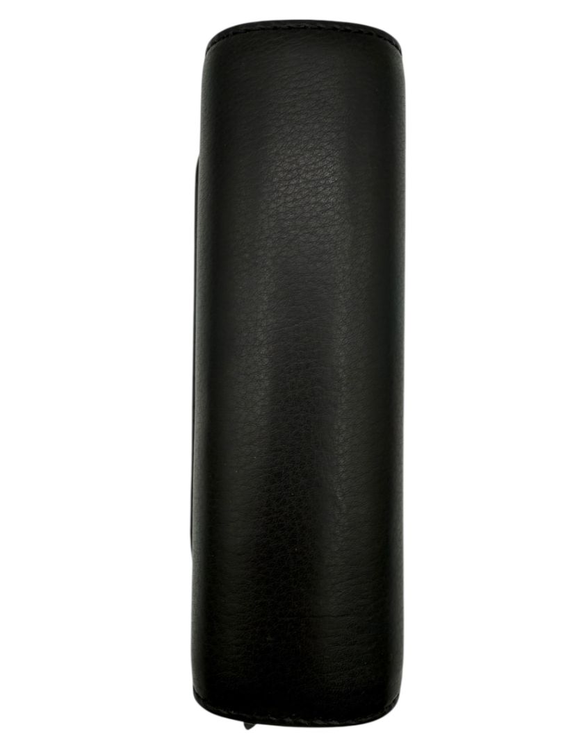 This Chrome Hearts black leather eyeglass case is a stunning example of the brand’s signature craftsmanship and luxury. Crafted from premium grained leather, the case features embossed Chrome Hearts motifs on the top panel, including the iconic floral cross detailing. A smooth, curved silhouette and a sturdy zip-around closure ensure your eyewear stays protected in elevated style. The heavy-duty zipper pull, shaped in classic Chrome Hearts fashion, adds both flair and functionality.