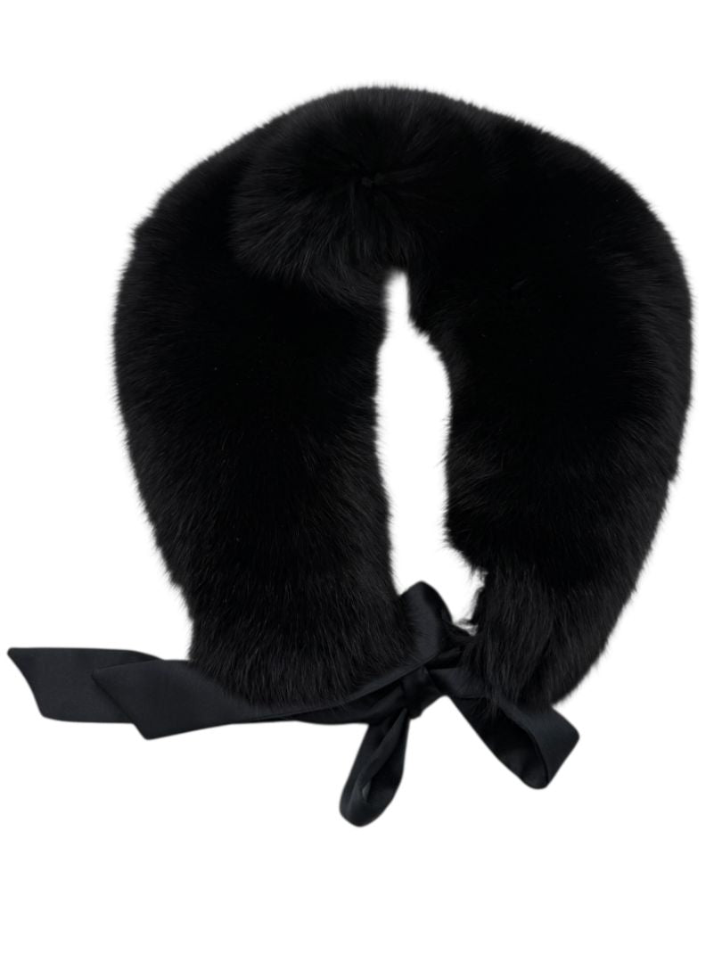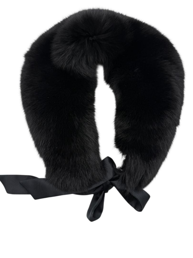 Wrap yourself in timeless luxury with this exquisitely soft Dana Buchman genuine blue fox fur collar. Crafted in a deep, elegant black, this piece adds instant sophistication to any coat, sweater, or evening look. The collar drapes beautifully and secures at the front with a wide black satin ribbon, allowing you to style it exactly how you like.