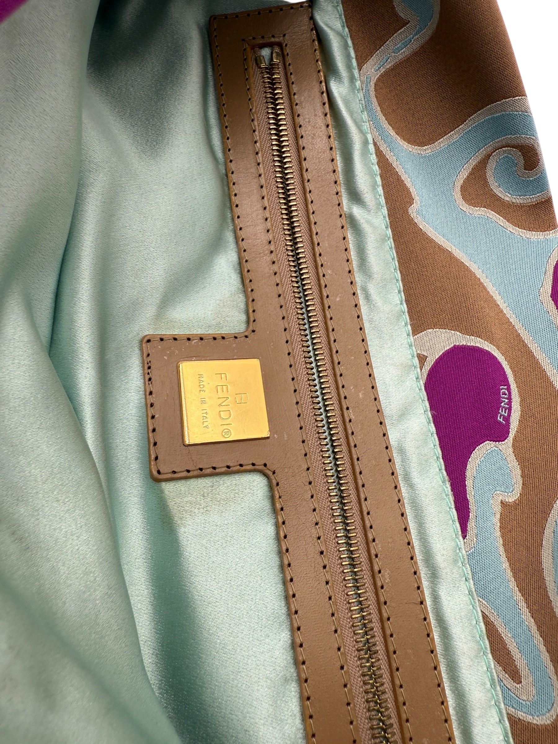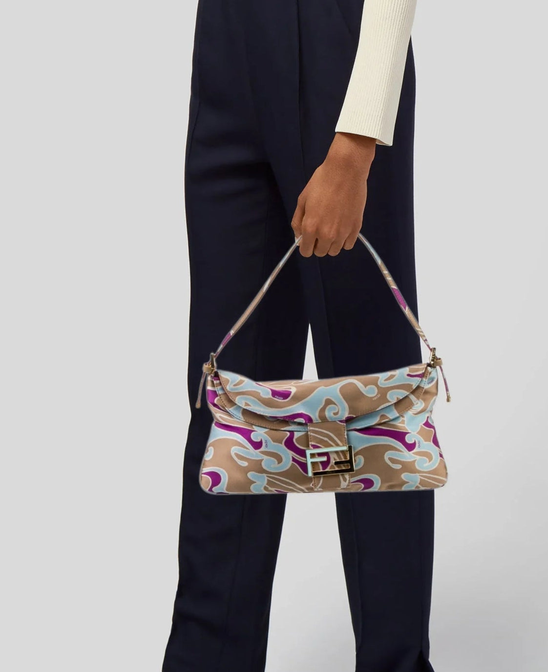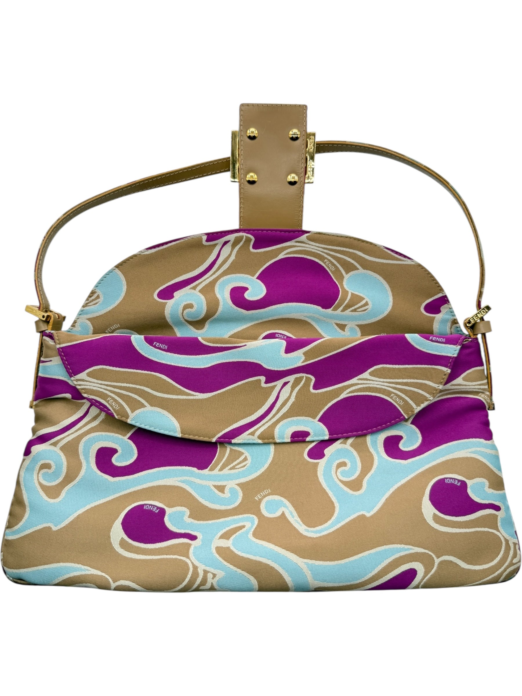 Fendi 2001 Multicolor Satin Psychedelic Print Baguette "Momma" Shoulder Bag
