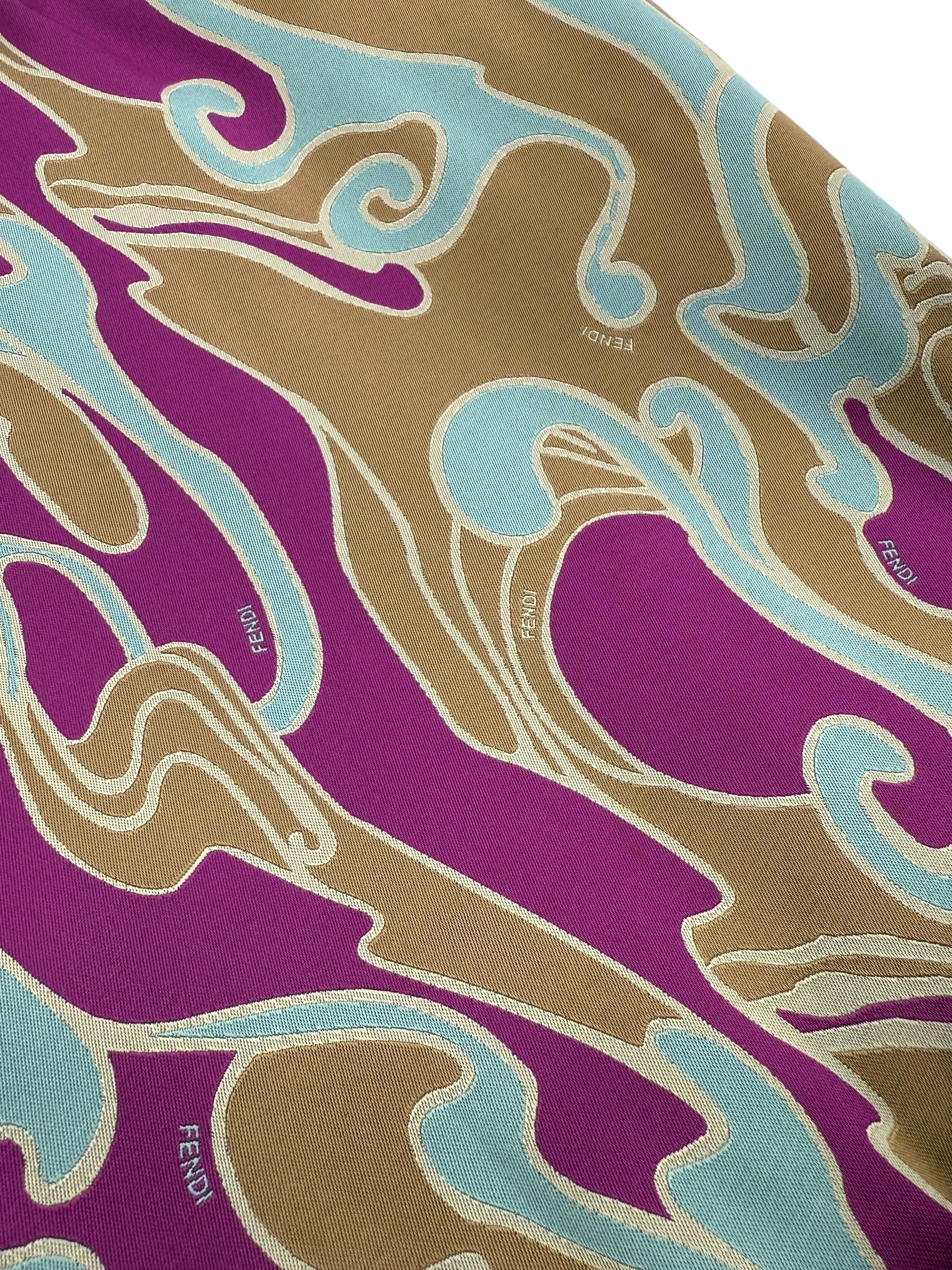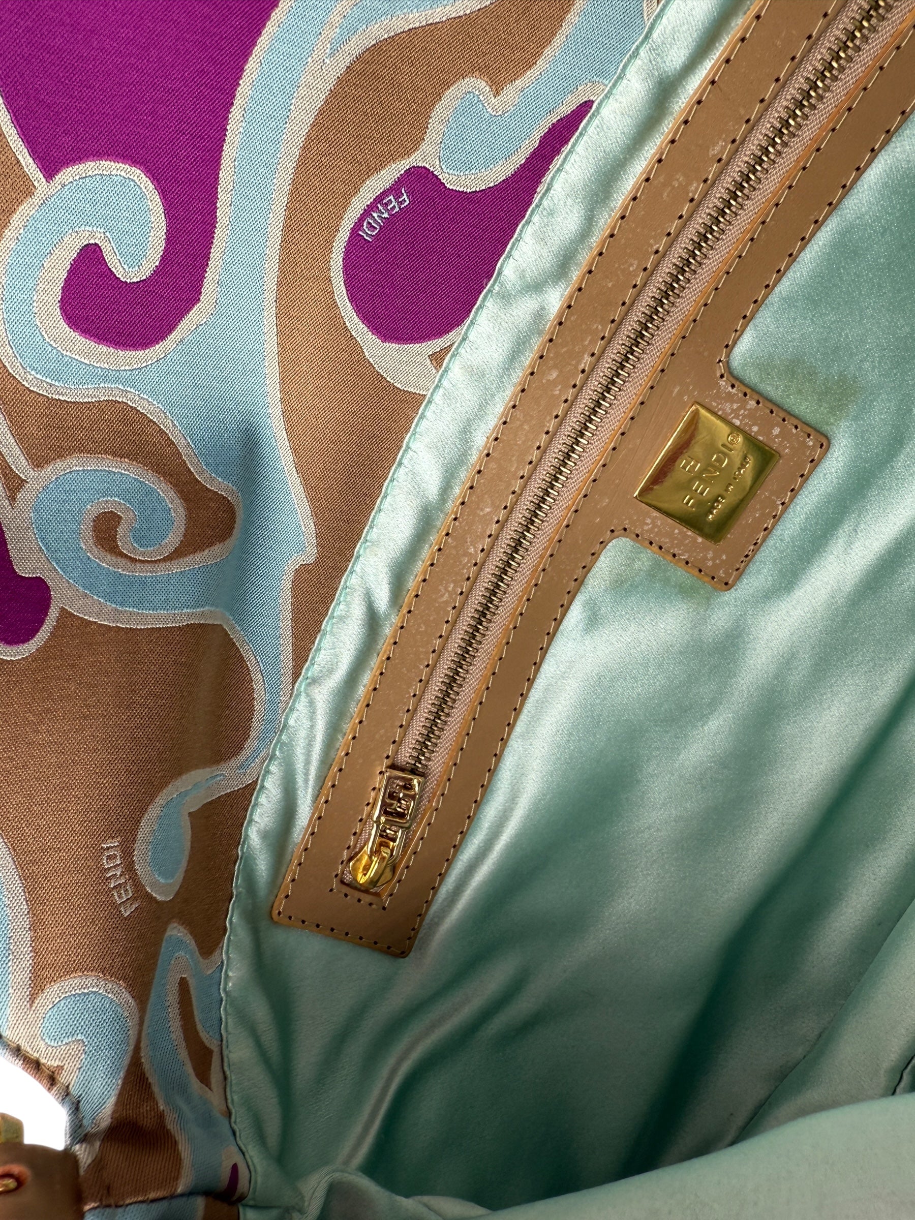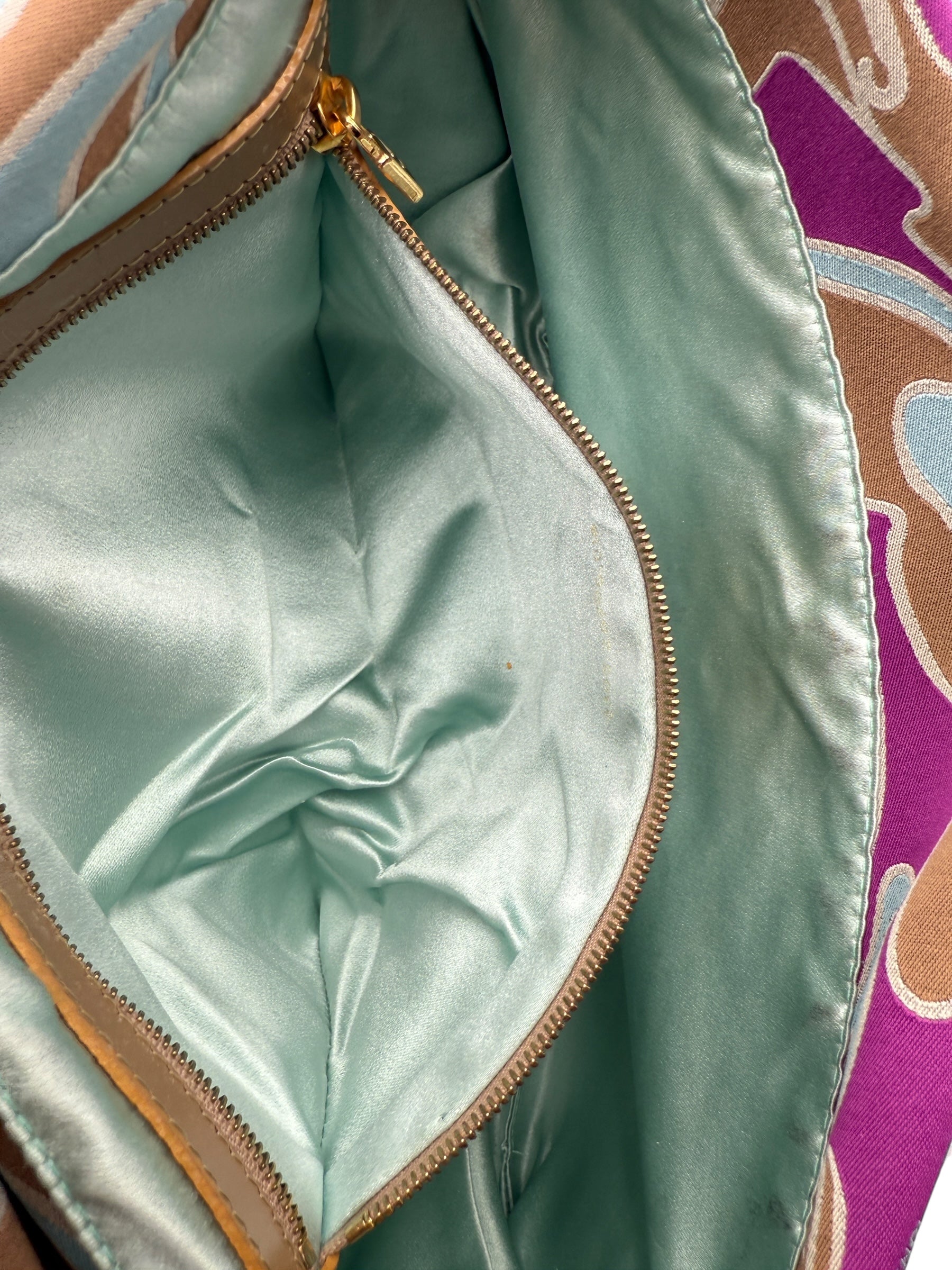 Fendi 2001 Multicolor Satin Psychedelic Print Baguette "Momma" Shoulder Bag
