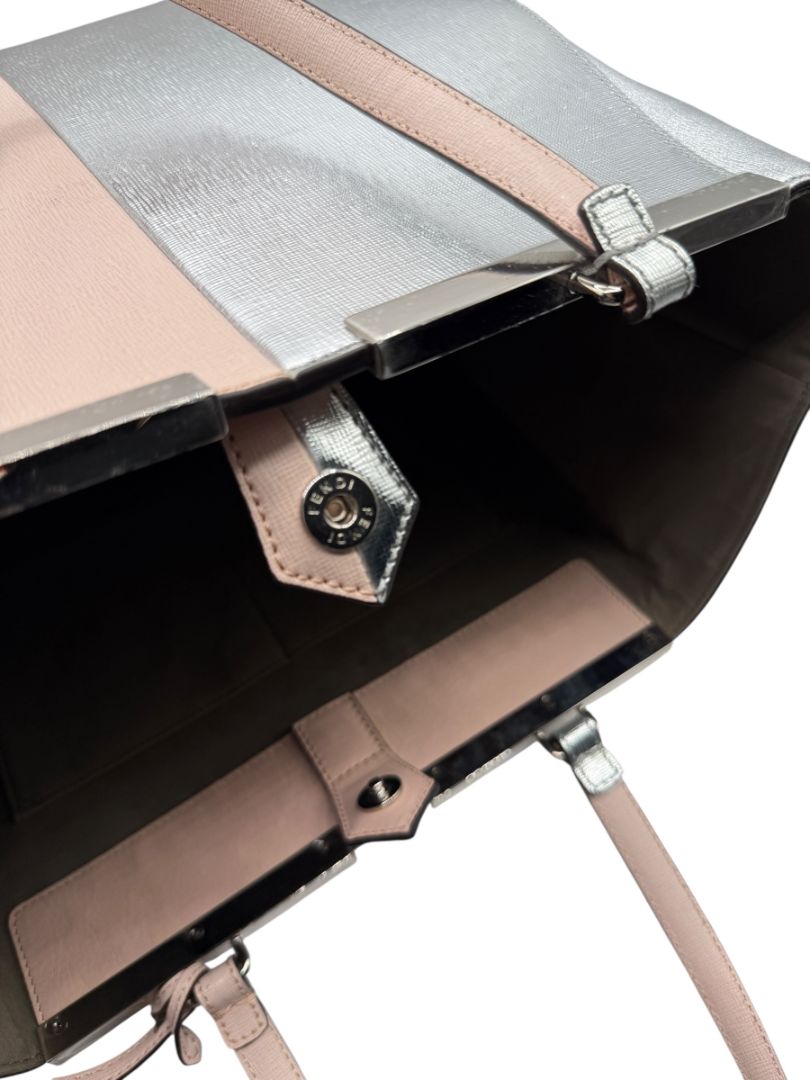 Fendi Pink/Silver Grained Leather 3Jours Large Shopper Tote Bag
