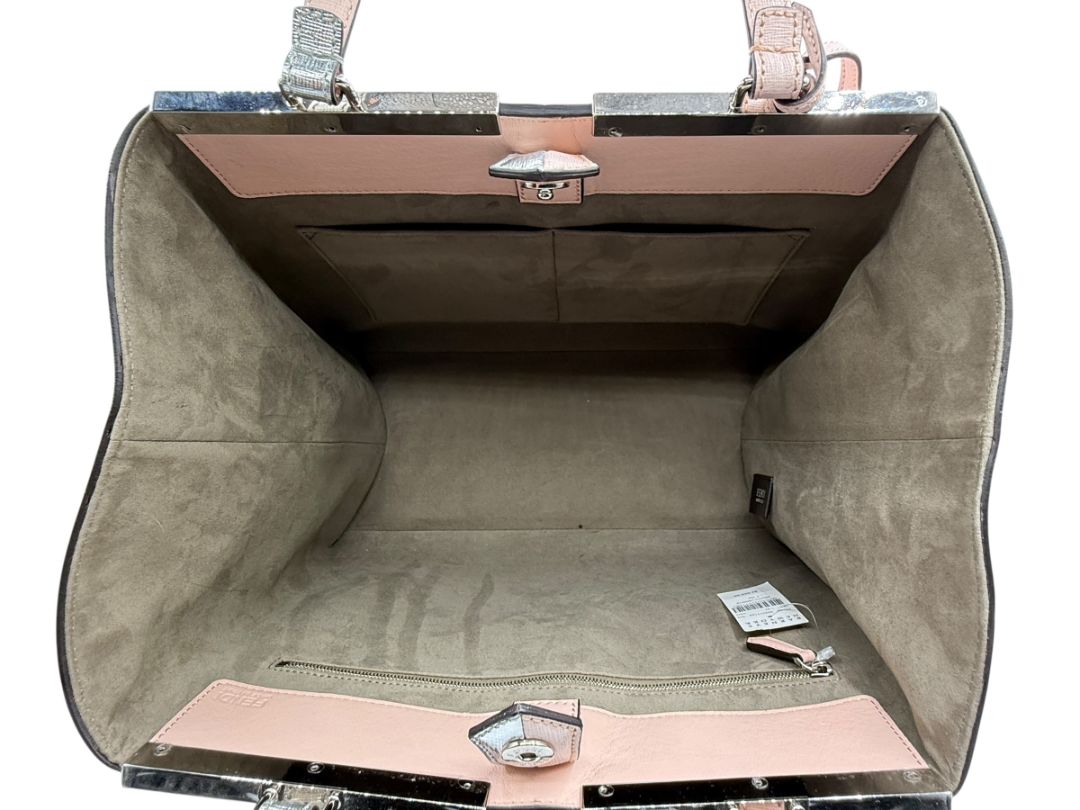 The exterior leather is clean with some scuffing (Pictured) The silver tone hardware is bright and most of the hardware is still covered by the protective plastic. The handles are clean with no wear. The interior lining is clean with signs of gentle rubbing, but overall remains in really great condition. Comes with original price tag and care booklets.