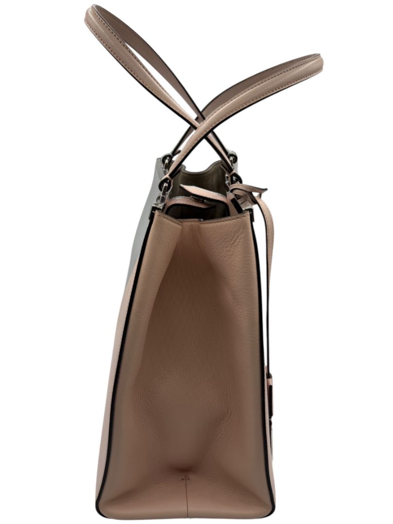 This stunning 3Jours bag features bi colored calfskin leather on the body and a sleek logo top bar, matching clochette and two toting handles. The roomy interior makes it ideal for holding your daily essentials. Carry this beauty on your arm for an instantly chic look, you don't want to miss out on this current and gorgeous piece from Fendi! Current retail price is $2550.