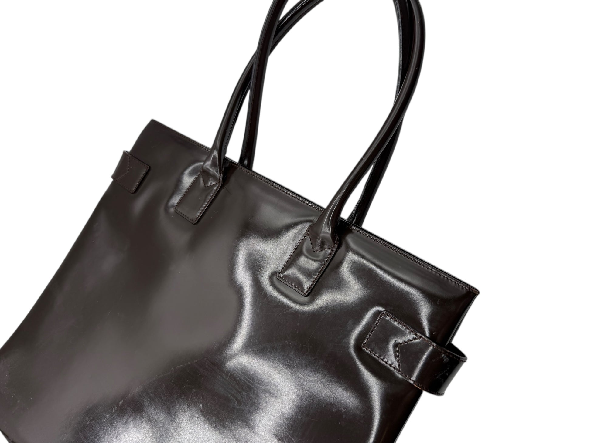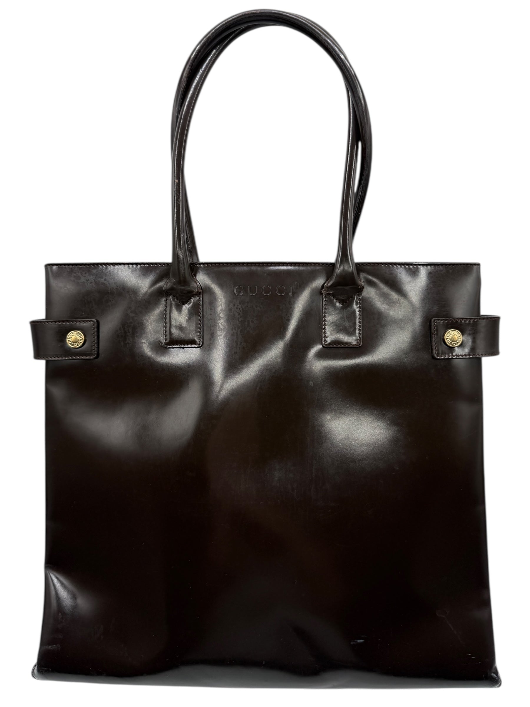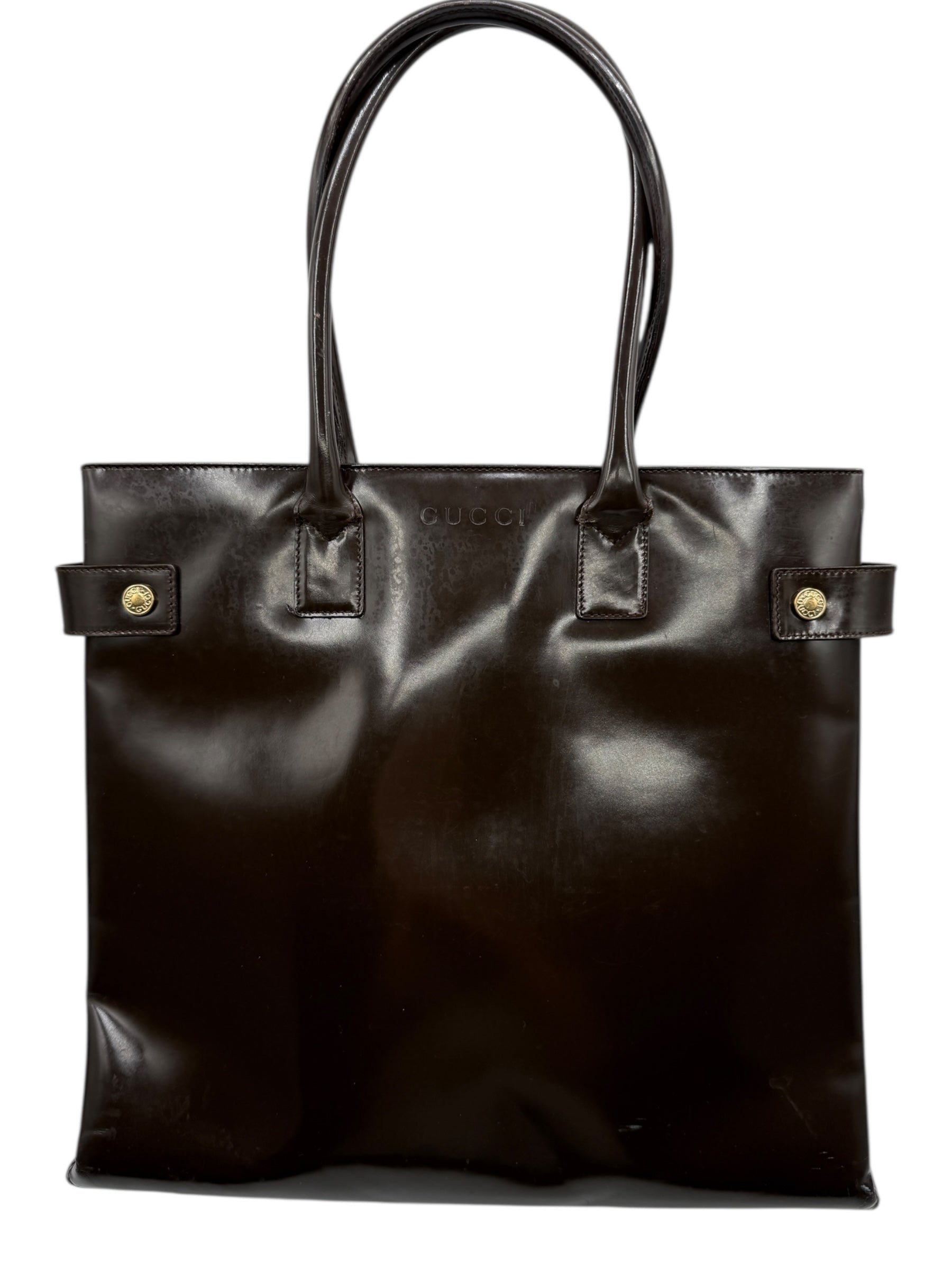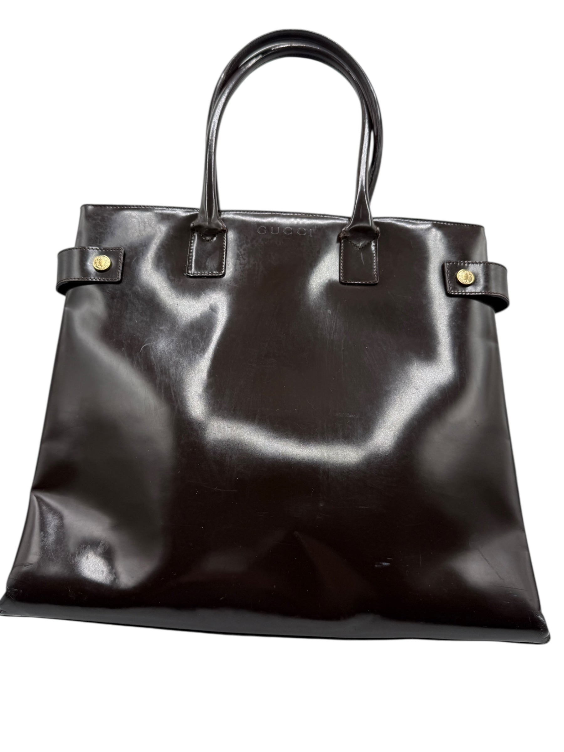GUCCI Vintage Brown Patent Leather Tote – Fair Condition – With Original Care Booklet