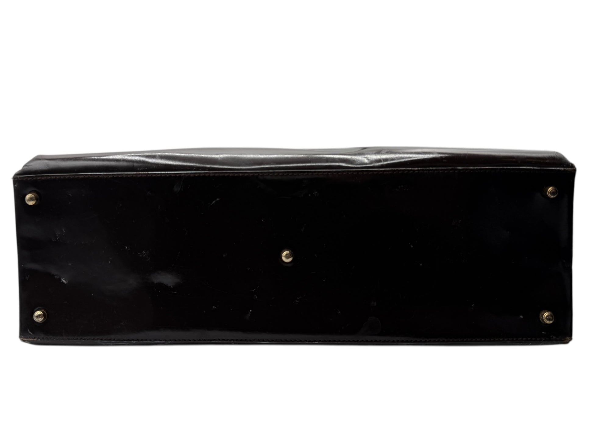 Fair pre-owned condition. Exterior shows notable creasing, scuffs, and surface wear throughout the patent leather. Handles remain strong. Interior exhibits wear, fading, and areas of peeling typical of older Gucci leather-lined bags. Hardware shows tarnishing. Fully functional as a tote, but priced according to visible wear—ideal for restoration or for collectors who appreciate authentic vintage character.
