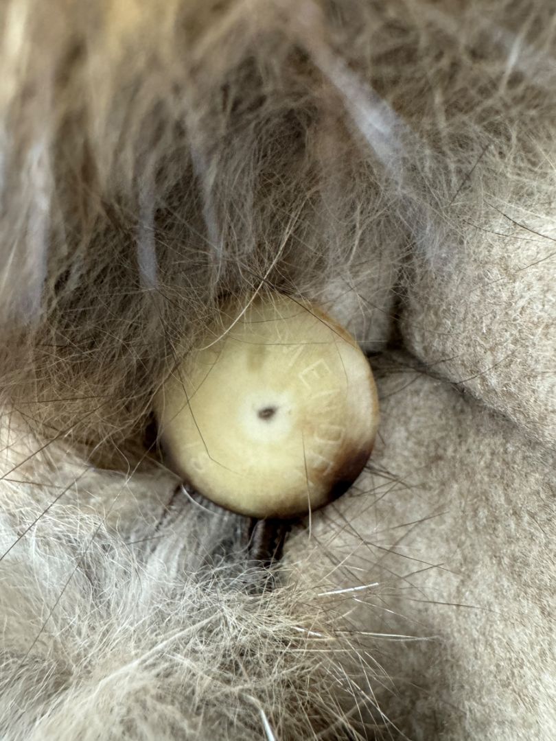 Fabric: Feels like a luxurious cashmere-wool blend body with genuine fox fur trim