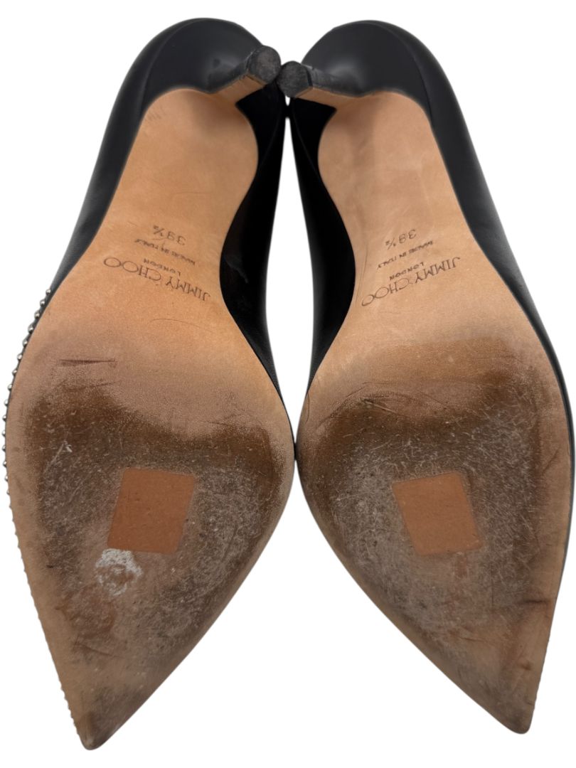 JIMMY CHOO Black Leather Studded Pointed Toe Pumps – Size 39.5