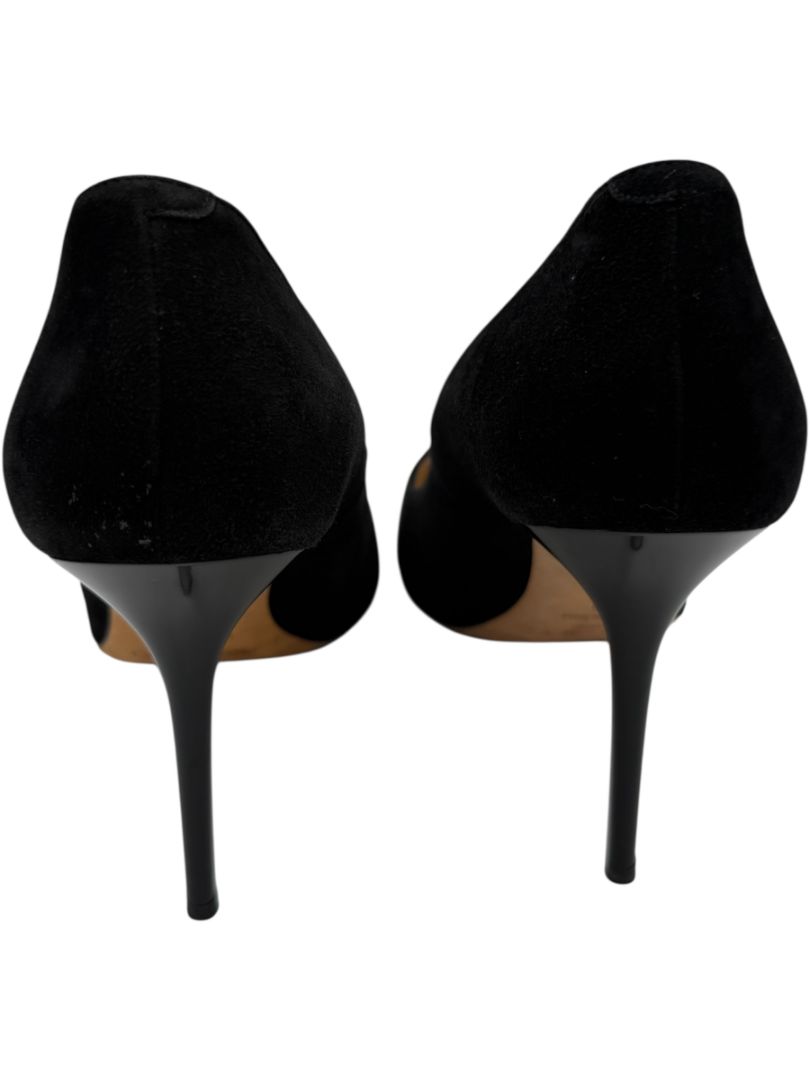 Material: Black suede upper with croc-embossed leather toe