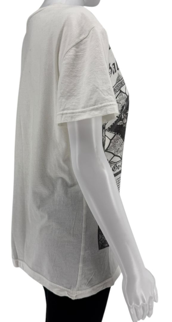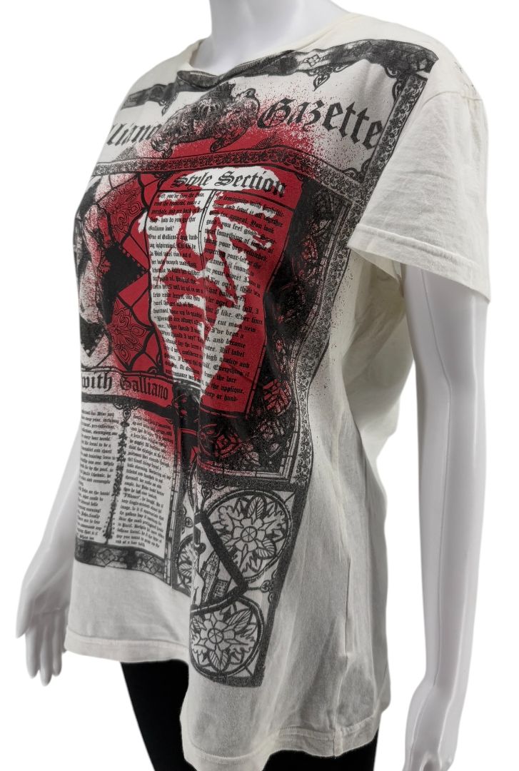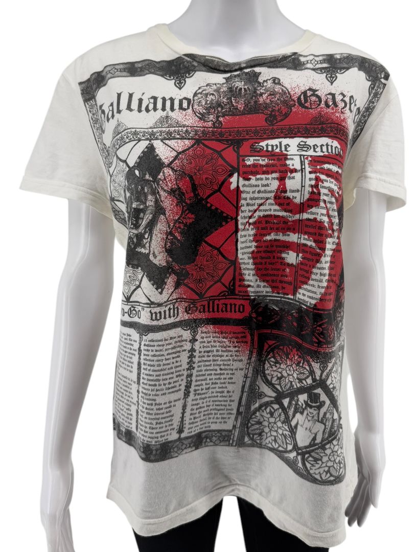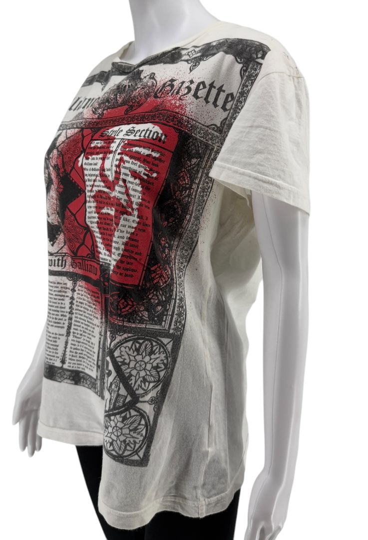 John Galliano Y2K Short Sleeve White Graphic Newspaper Tee - M