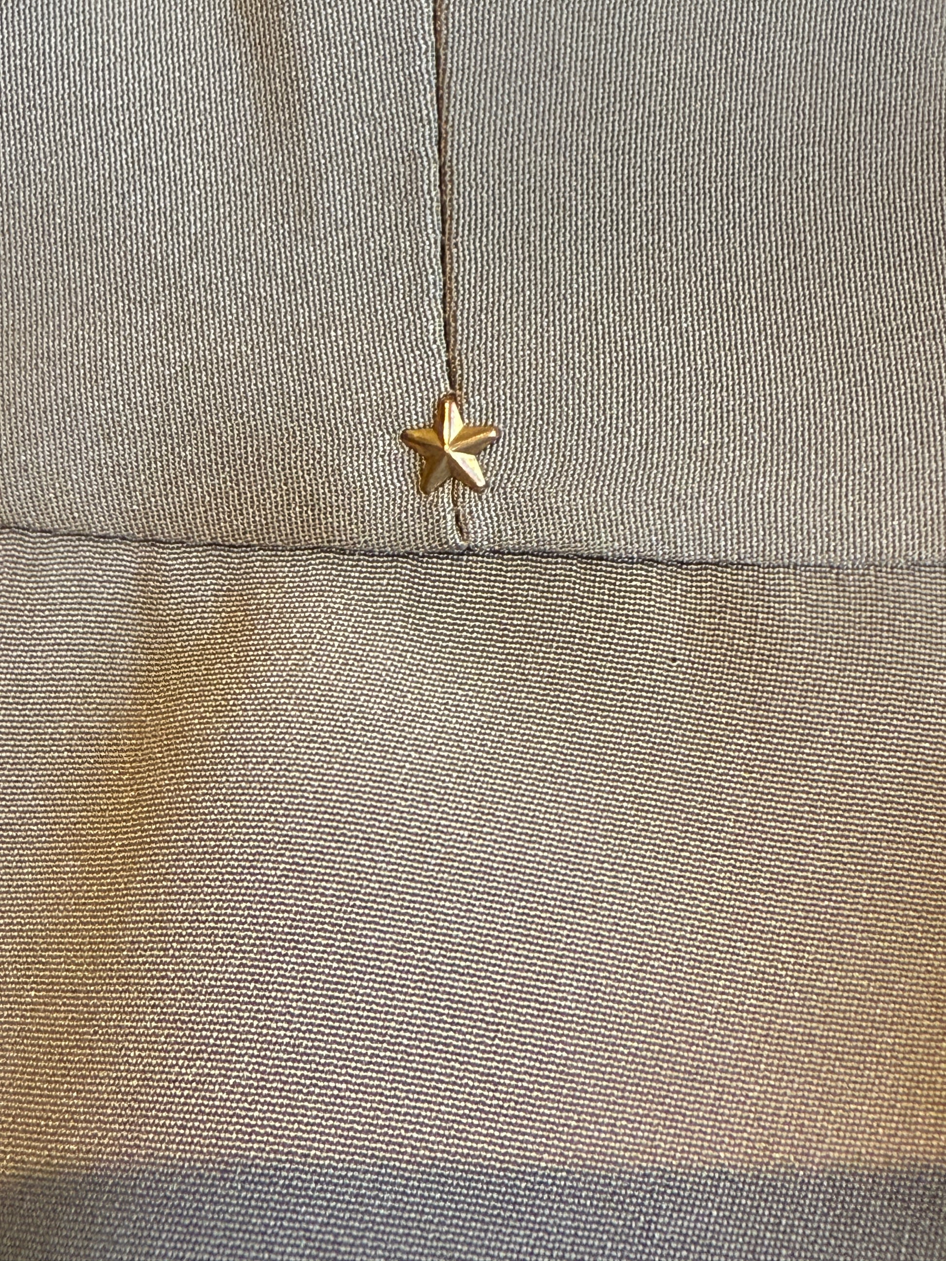 Minimalist luxury meets quiet sophistication in this Peter Cohen long-sleeve blouse, crafted in 100% silk and finished with the designer’s signature gold star. This elegant piece features a versatile collar that can be styled multiple ways—popped, open, or flat—creating varied silhouettes with ease. The blouse fastens with tonal buttons and includes refined cuff details and subtle side slits for movement.