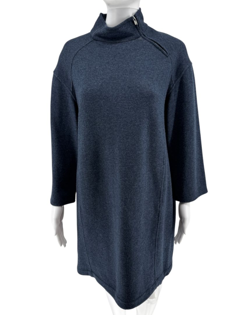 Loro Piana Blue Cashmere Funnel Neck Tunic with LP Zip – Size M