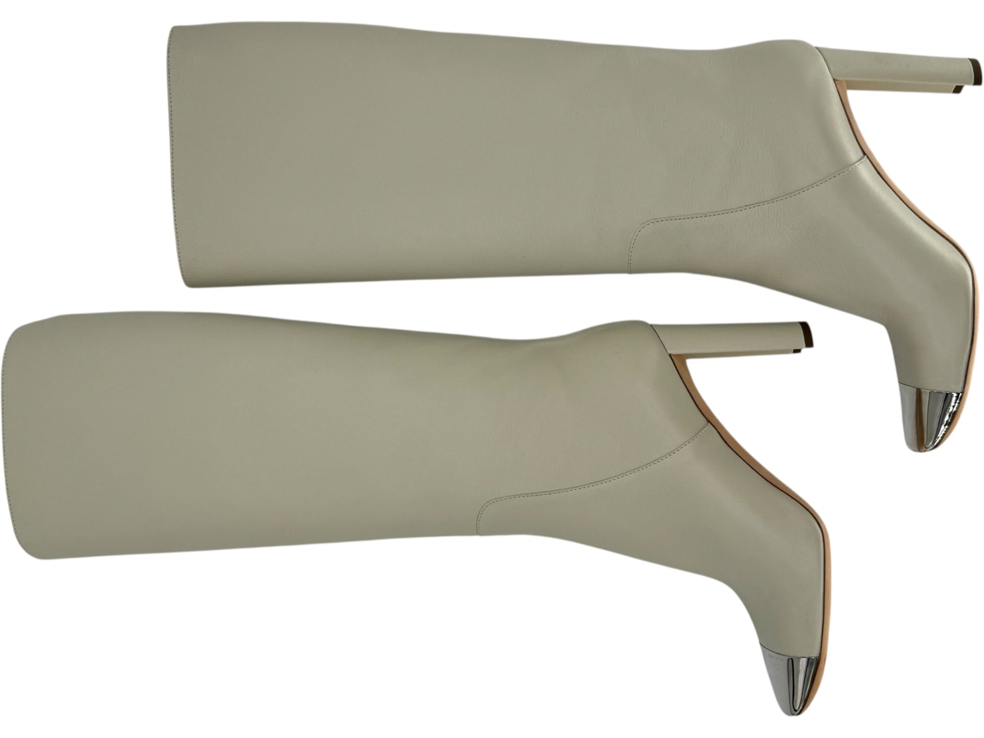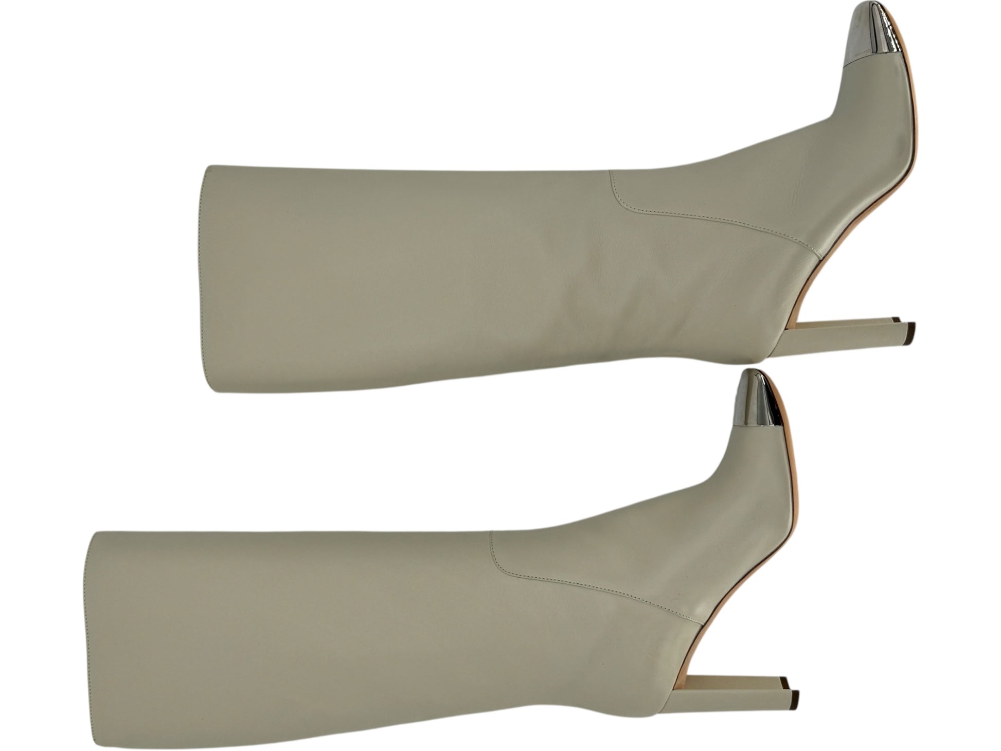 Louis Vuitton Ivory Leather Square-Toe Boots with Silver Cap – Size 39.5