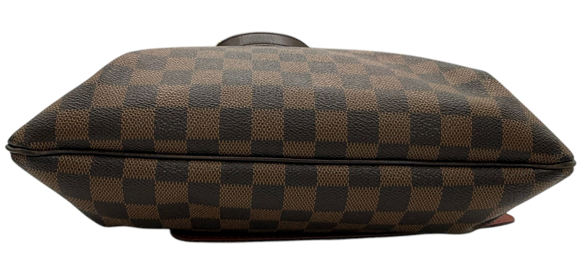 This slim and minimalistic crossbody is fashioned in messenger style from Damier Ebene coated canvas.