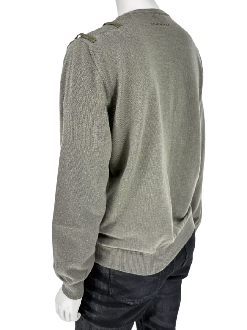 Burberry London Sage Green Merino Wool Military Sweater – Mens Size S