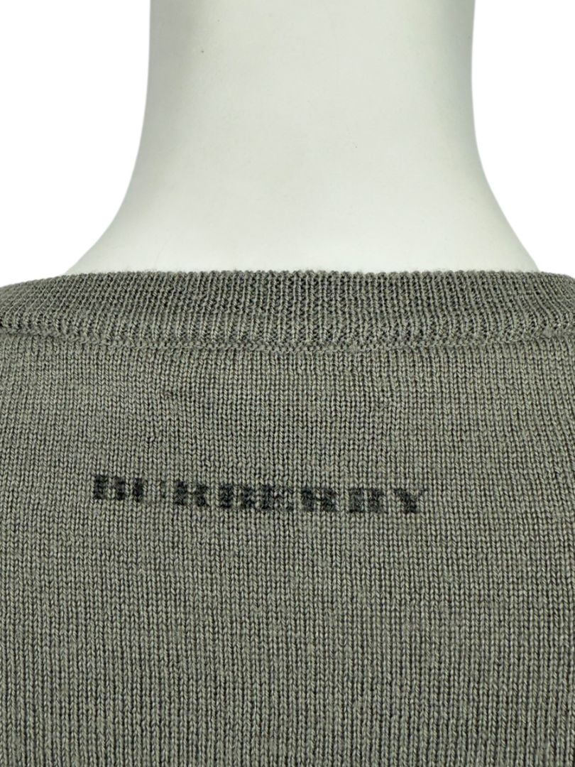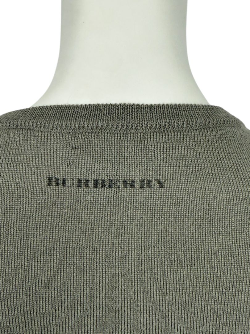 Burberry London Sage Green Merino Wool Military Sweater – Size S