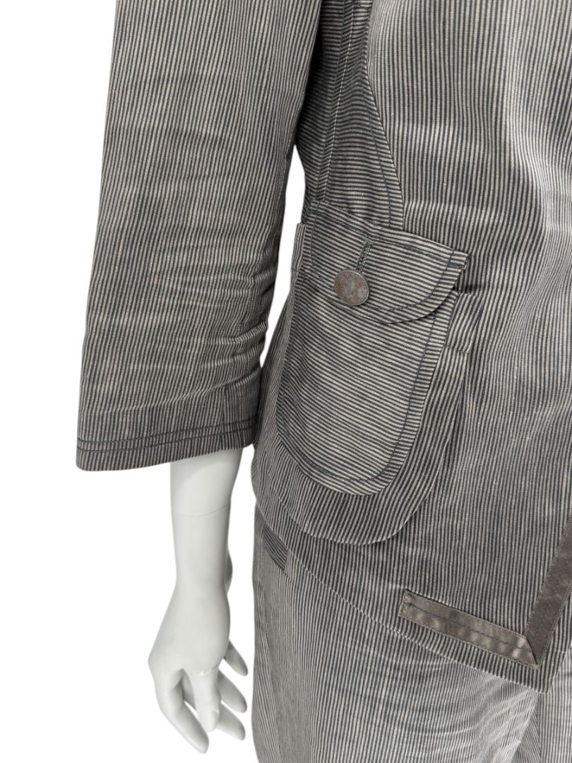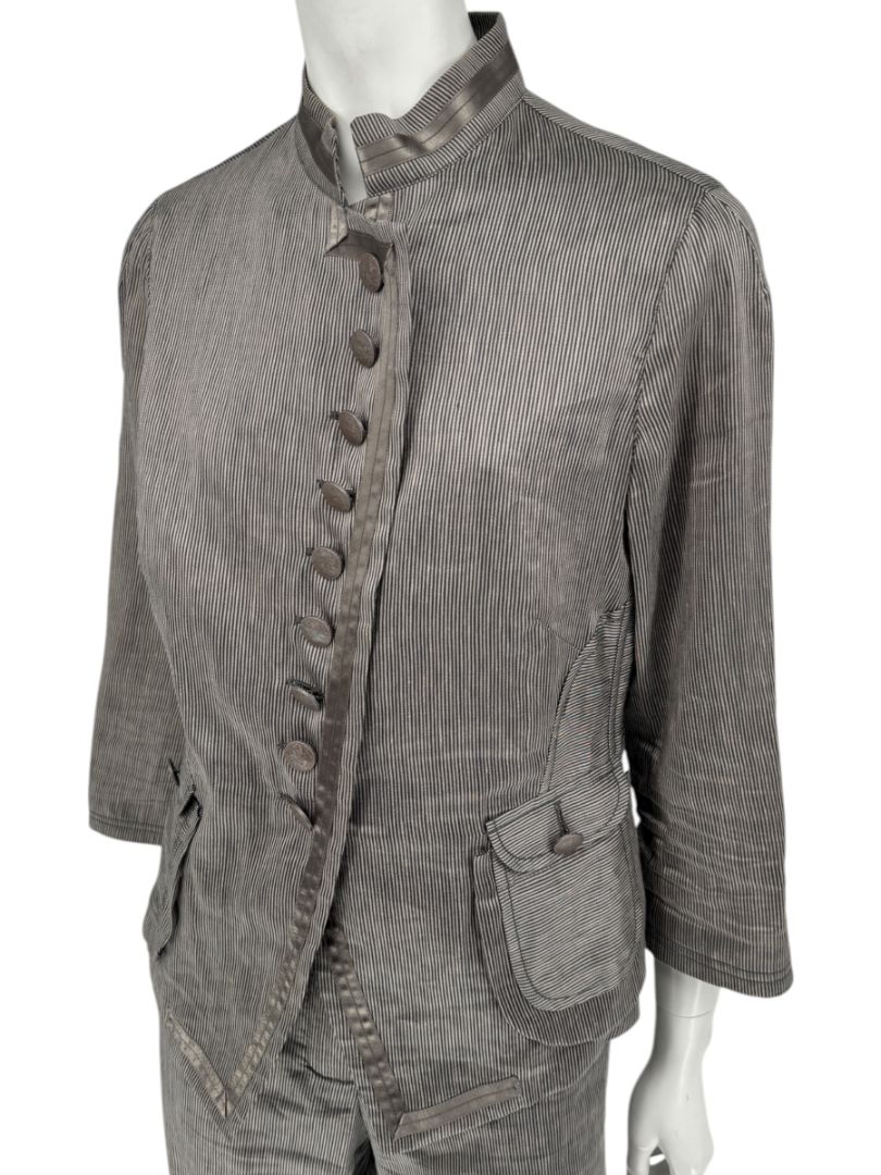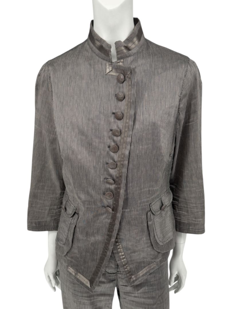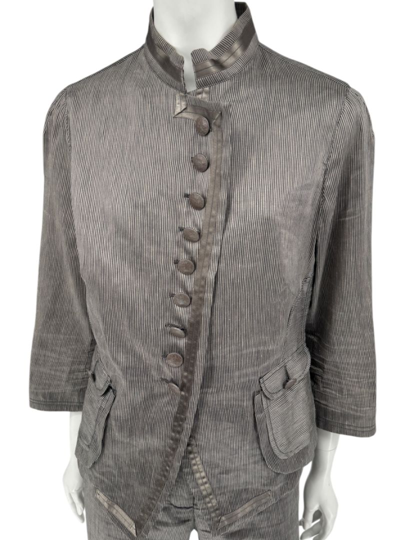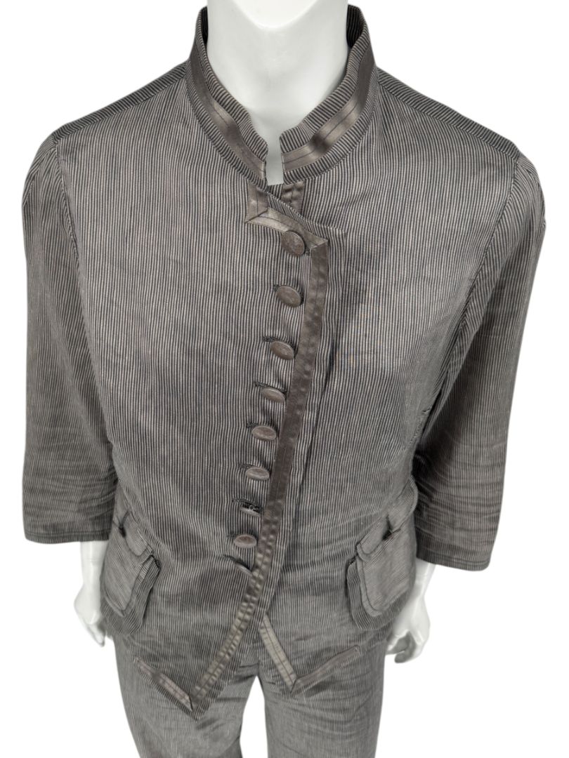 M. Siamo Women’s Striped Linen-Silk Blend Two-Piece Suit – Size 12 – Excellent Pre-Owned Condition