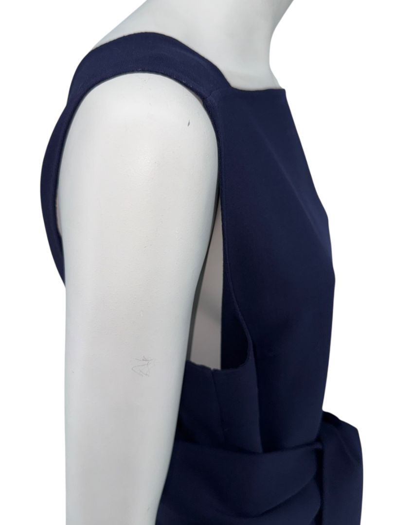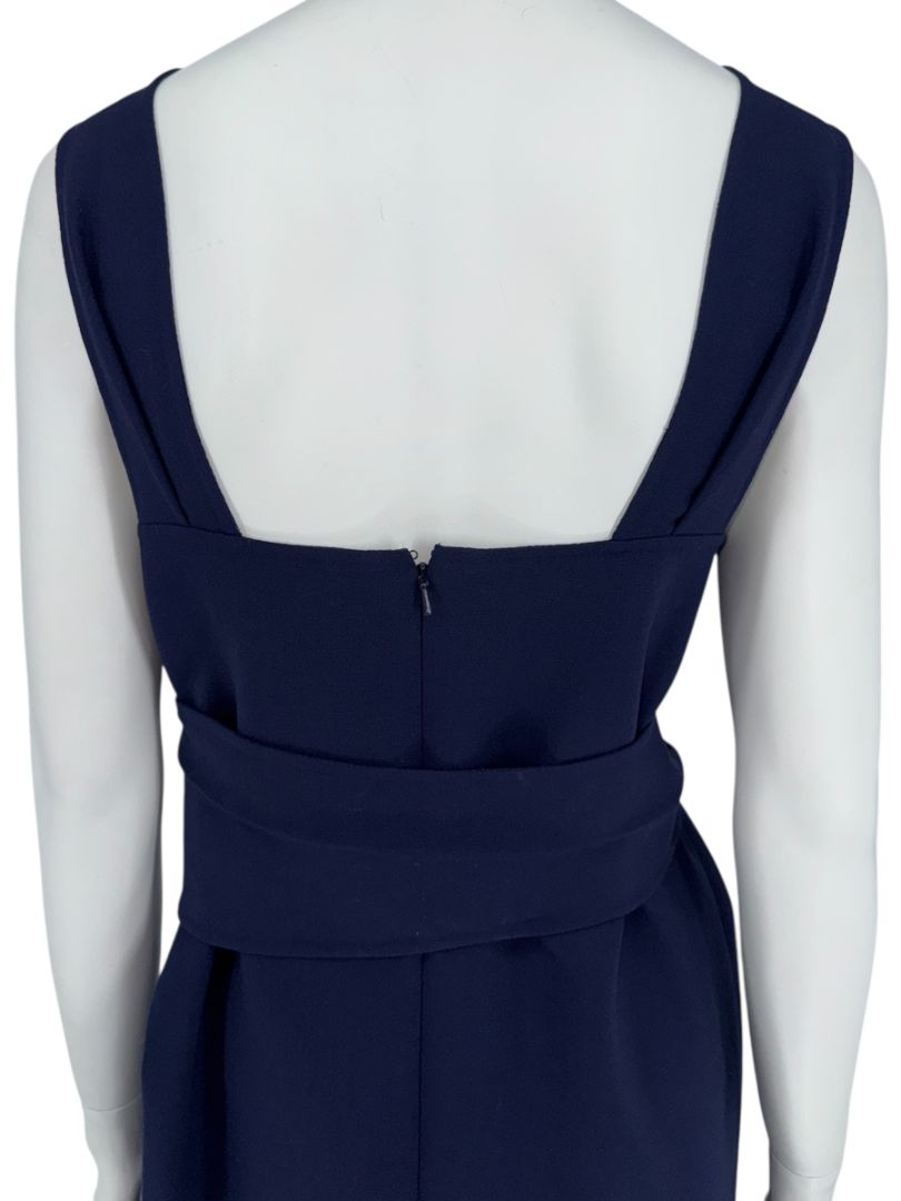 Oscar de la Renta Navy Sleeveless Dress with Tie Waist - Size 8
