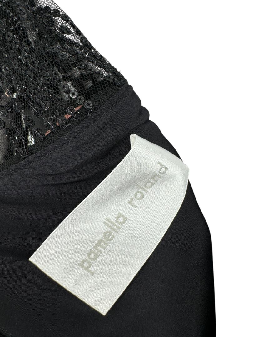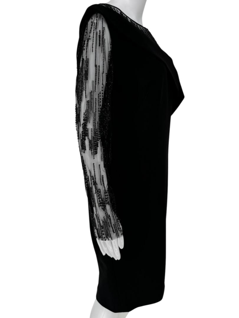 Pamella Roland Black Embellished Mesh Sleeve Cocktail Dress – Large