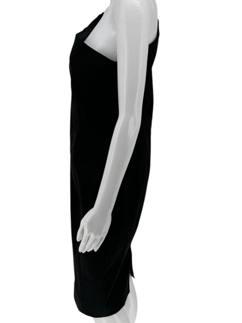 Pamella Roland Black Beaded One-Shoulder Cocktail Dress - Large