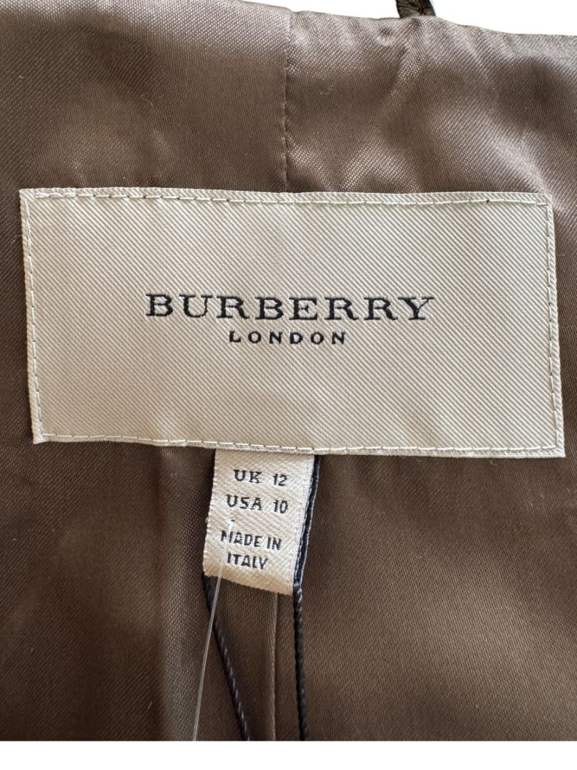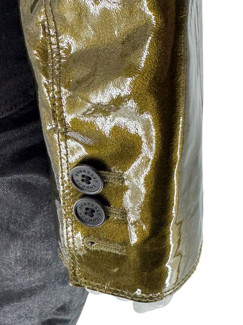 Burberry London Metallic Olive Green Leather Jacket – Size UK 12 / US 10