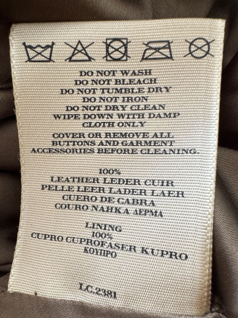 Fabric: 100% Leather (Exterior), 100% Cupro (Lining)