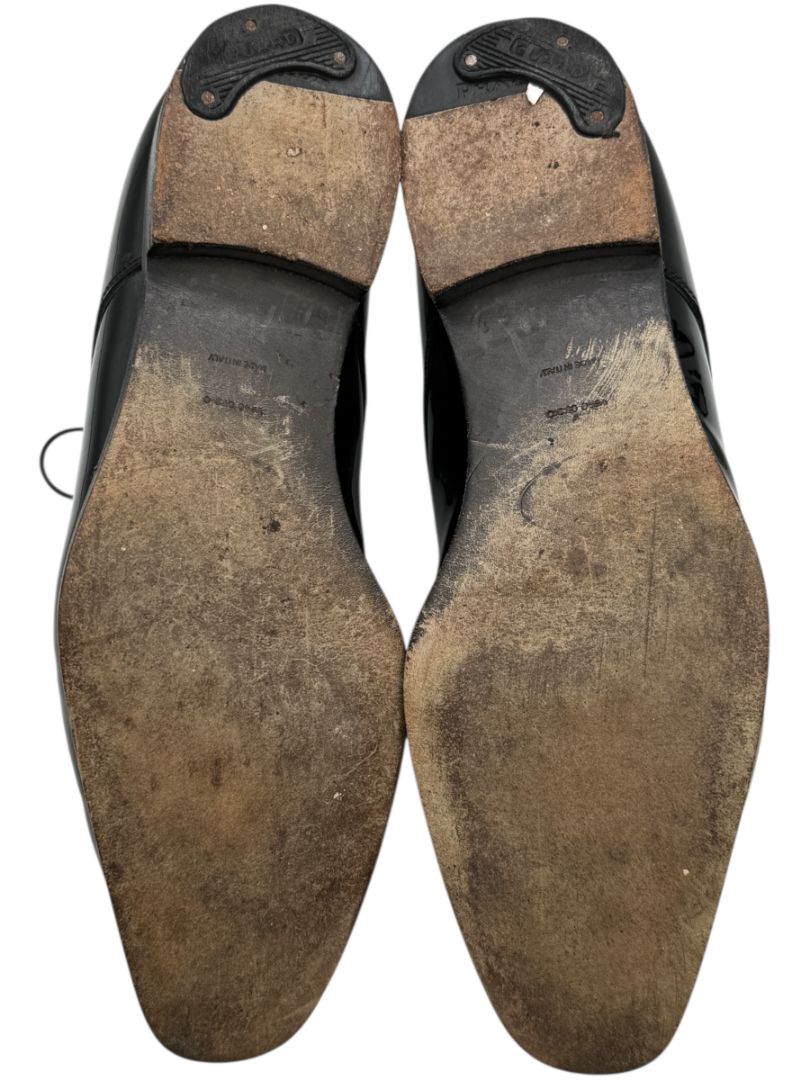 Prada Black Patent Leather Derby Shoes – Size 6.5 Mens – Heavy Wear – With Box