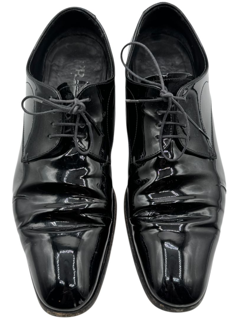 Prada Black Patent Leather Derby Shoes – Size 6.5 Mens