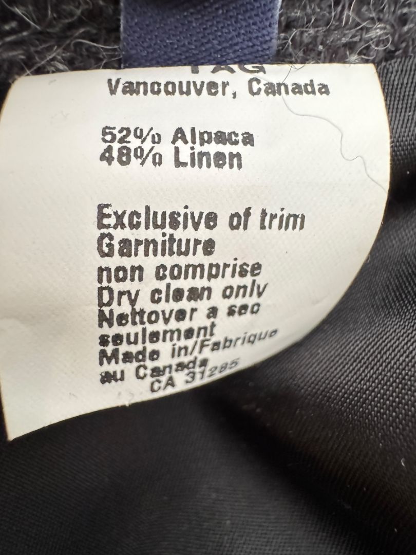 Material: 52% Alpaca, 48% Linen (exclusive of trim)