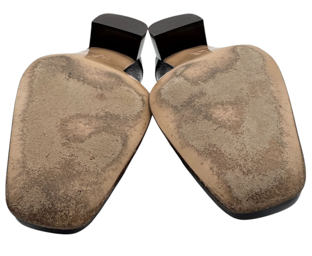 Timeless and elegant, these Salvatore Ferragamo loafers feature a sophisticated croc-embossed leather finish and signature gold-tone Gancini buckle detail across the vamp. The structured silhouette with a square toe and low block heel offers both comfort and polish—hallmarks of Ferragamo’s Italian craftsmanship. Fully lined in smooth leather with a durable leather outsole.