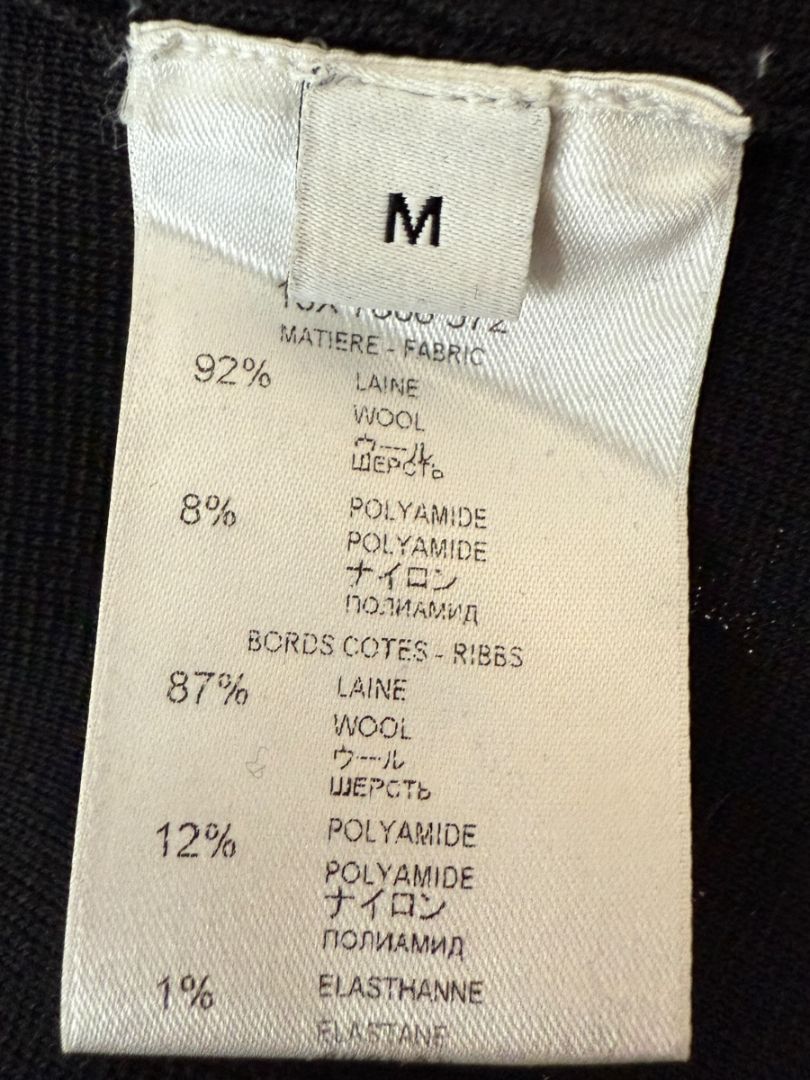 Elevate your wardrobe with this striking Givenchy Paris V-neck sweater, crafted in Italy from a soft wool blend. The sleek black knit is accented with rose gold-tone dome studs tracing the deep V neckline and continuing along the back collar—an elegant yet edgy signature of Givenchy’s modern aesthetic. Fine ribbed trim at the cuffs and hem completes the refined silhouette.