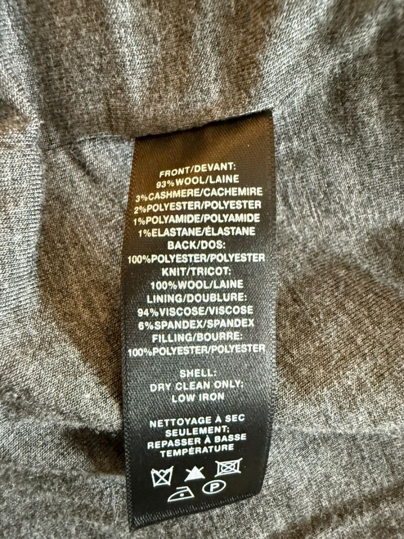 Front: 93% Wool, 3% Cashmere, 2% Polyester, 1% Polyamide, 1% Elastane